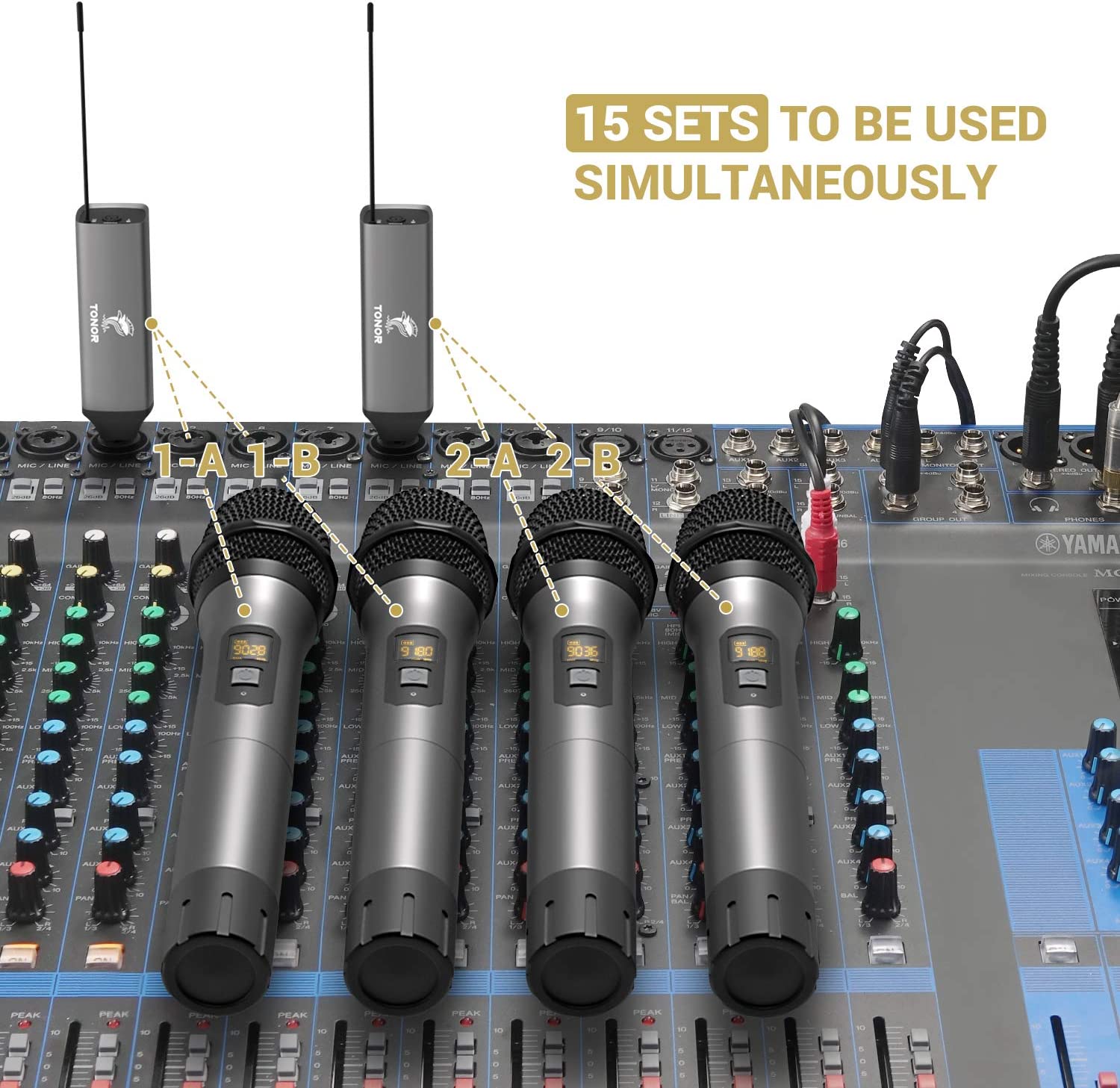 • Stable Signal: Just turn on the system, then the receiver will sync the frequency with the transmitter automatically. 15 adjustable channels to get rid of radio interference, up to 15 sets can be used simultaneously.