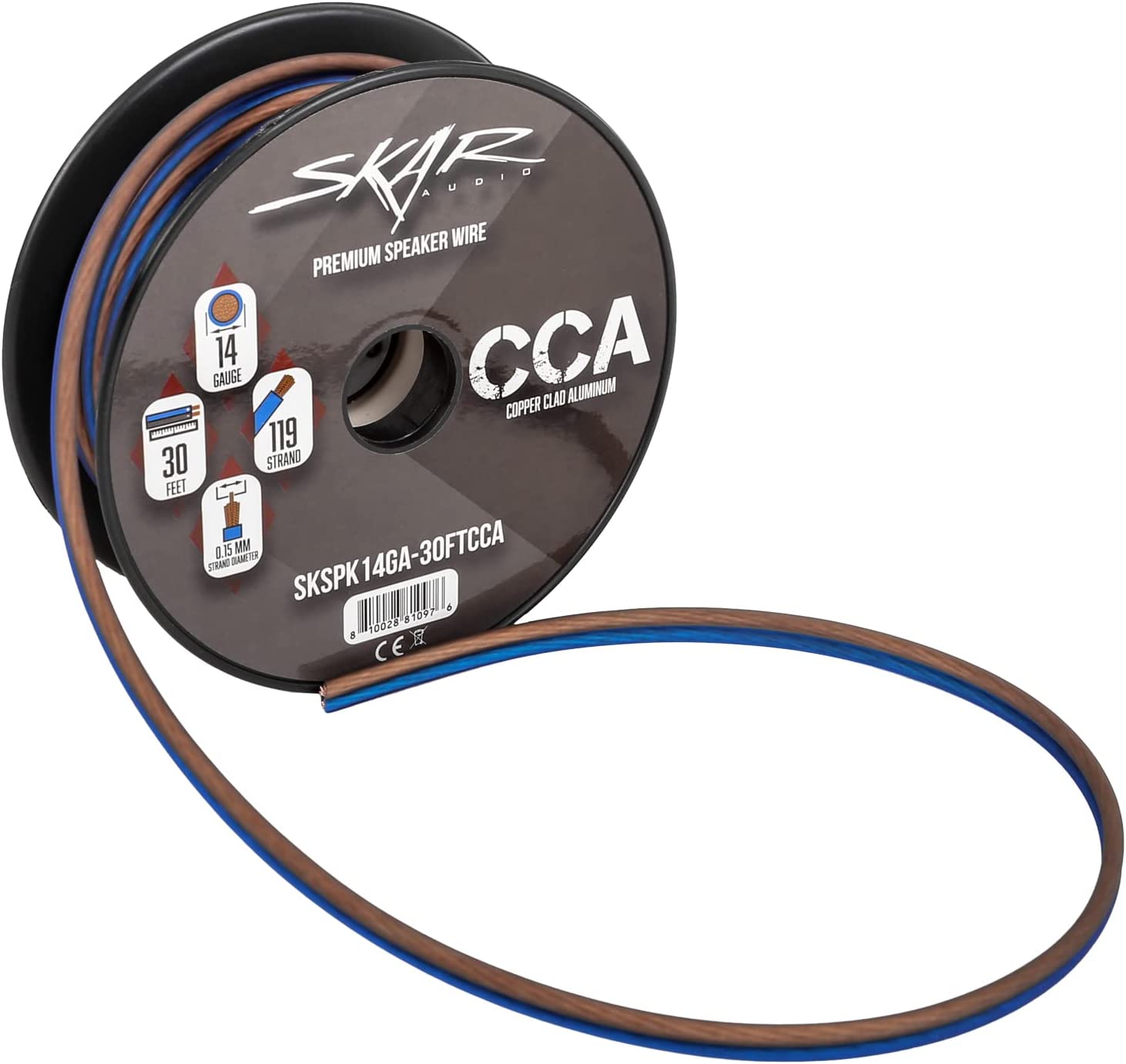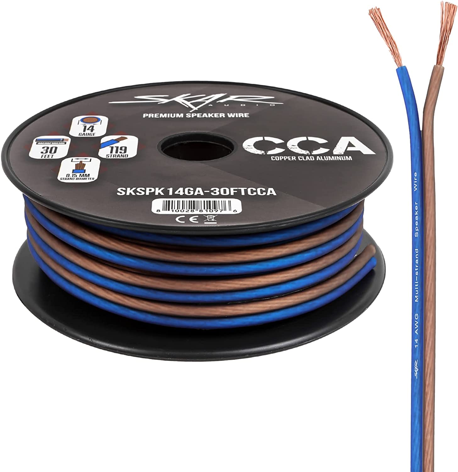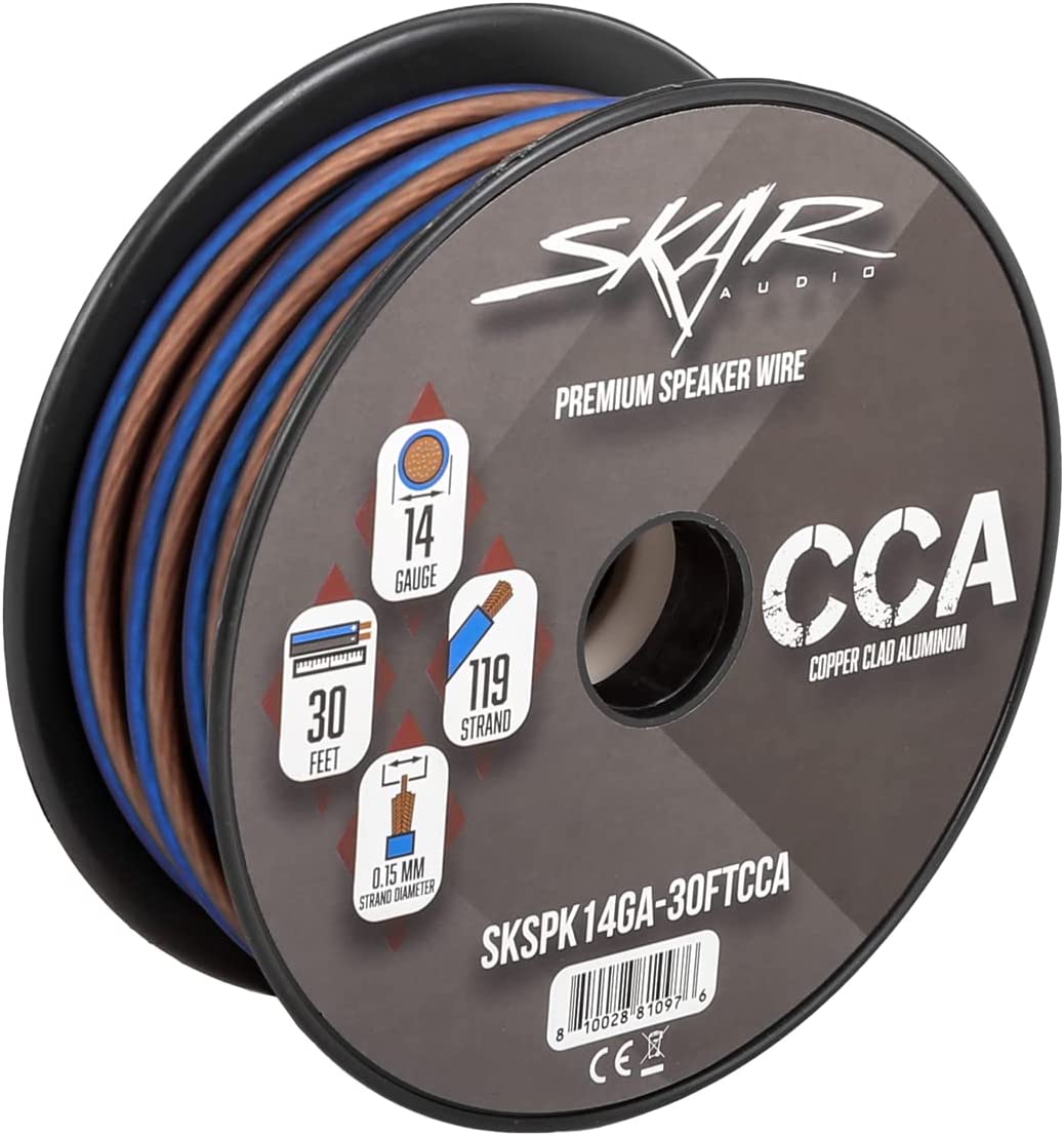Skar Audio 14 Gauge AWG Audio Speaker Wire - 30 Feet (Blue/Brown)
