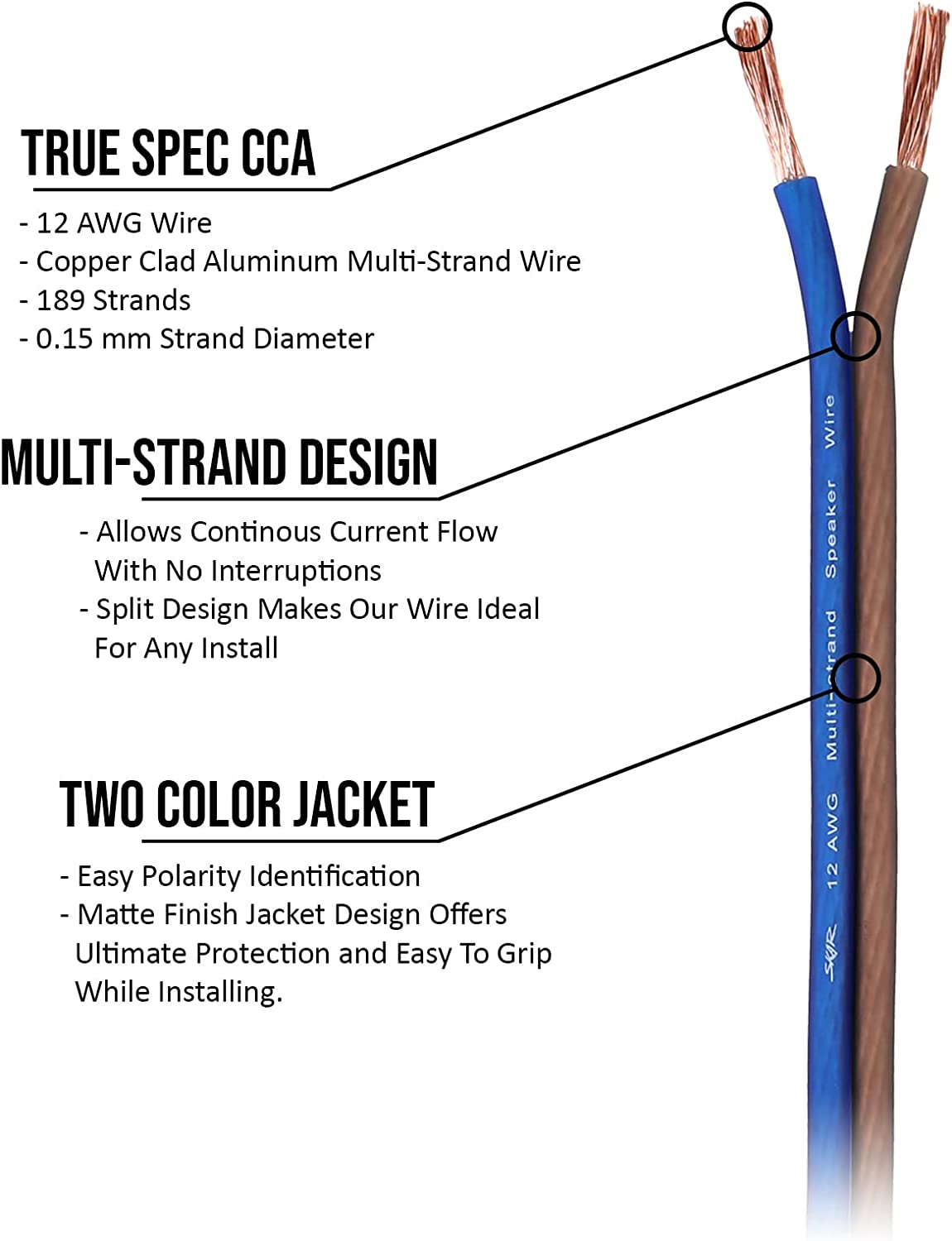 Copper Clad Aluminum (CCA) 2-Conductor Wire allows for Excellent Signal and Current Transfer