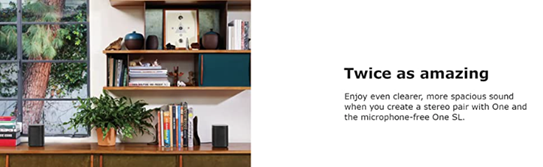 • Stereo sound with 2 - Pair 2 Sonos Ones together in the same room for stereo separation and more detailed sound. Use a pair as rear home theater surrounds with Arc or Beam