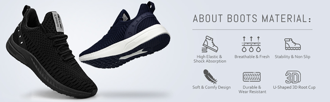 - High Elastic Outsole: The modules of mens running shoes that make up the shoe's outsole are designed to offer shock absorption and stability to the feet at key points of impact.