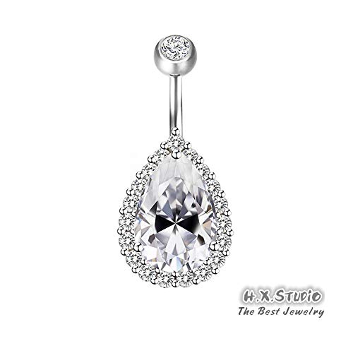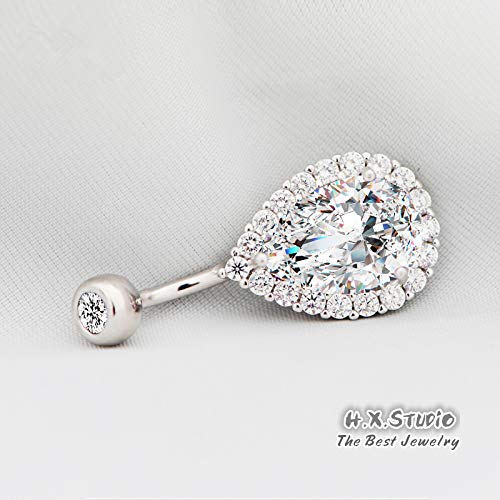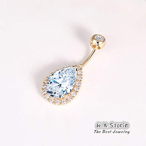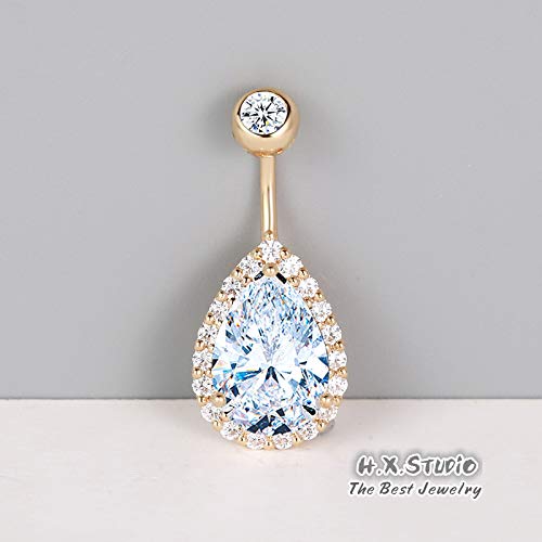 0.5CT-1.0CT GIA H-VS1 Pear Shaped Diamond Belly Button Ring, Navel Ring, Luxury Body Jewelry, Piercing, Sexy Jewelry, 3 Gold Colors Available, Wholesale Available