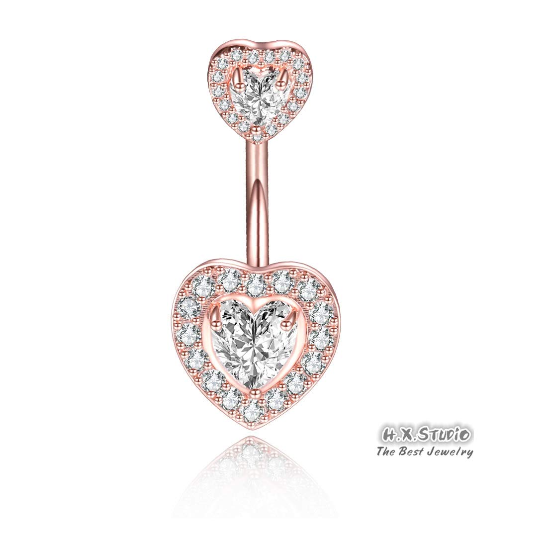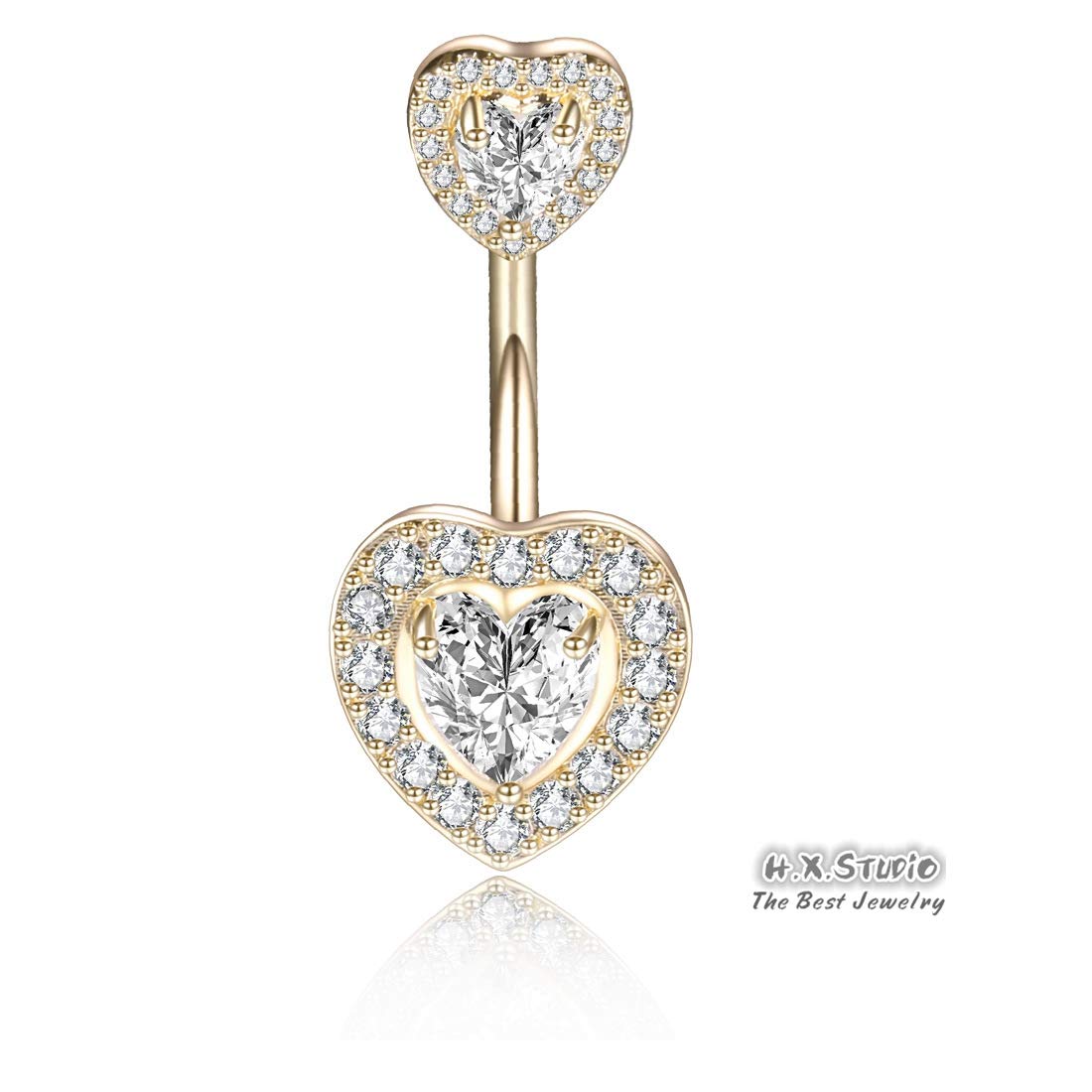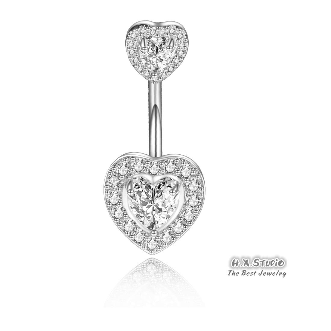 0.5CT-1.0CT GIA H-VS1 Lovely Heart Shaped Diamond Belly Button Ring, Halo Navel Ring, Luxury Body Jewelry, Piercing, Sexy Jewelry, 3 Gold Colors Available, Wholesale Available