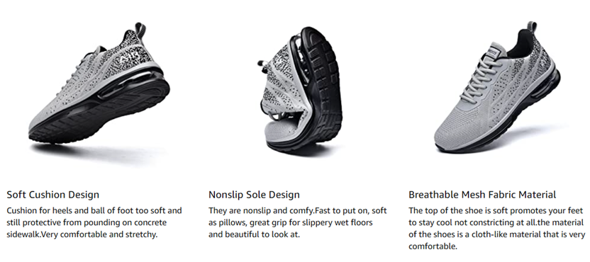 • 【Air Cushion Design】The running shoes use air cushion design, provide cushioning and support effect for the feet.
