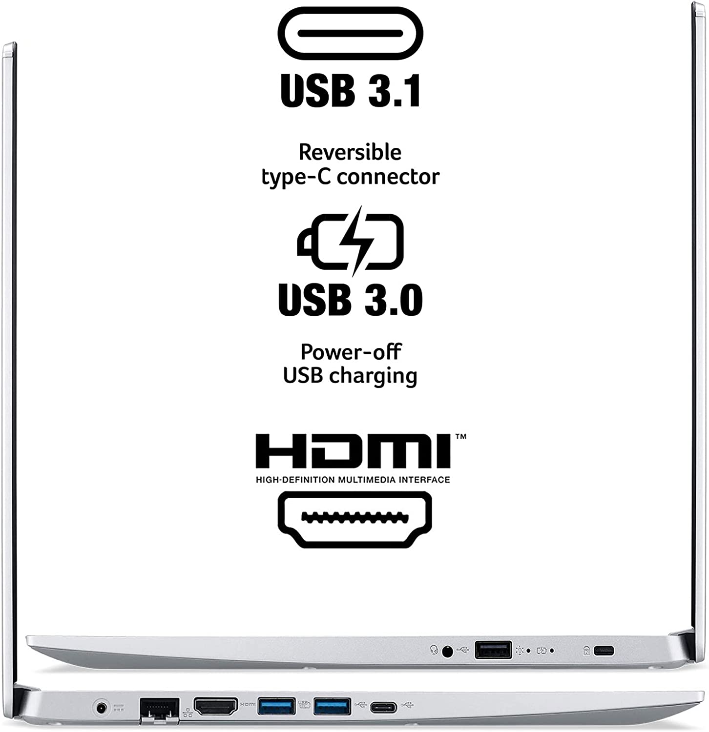 Acer Aspire 5 A515-55-56VK comes with these high level specs: 10th Generation Intel Core i5-1035G1 Processor 1.0GHz with Turbo Boost Technology up to 3.6GHz (6MB Smart cache), Windows 10 Home, 15.6" Full HD (1920 x 1080) widescreen LED-backlit IPS Display, Intel UHD Graphics, 8GB DDR4 Memory, 256GB PCIe NVMe SSD, 1 - Available Hard Drive Bay, True Harmony Gen 2 Technology, Two Built-in Stereo Speakers, Acer Purified.Voice Technology with Two Built-in Microphones, Intel Wireless Wi-Fi 6 AX201 802.11ax Dual-Band 2.4GHz and 5GHz featuring 2x2 MU-MIMO technology (Max Speed up to 2.4Gbps), 10/100/1000 Gigabit Ethernet LAN (RJ-45 port), Bluetooth 5.0, Back-lit Keyboard, Acer Fingerprint Reader supporting Windows Hello, HD Webcam (1280 x 720), 1 - USB 3.1 (Type-C) Gen 1 port (up to 5 Gbps), 2 - USB 3.1 Gen 1 Port (one with Power-off Charging), 1 - USB 2.0 Port, 1 - HDMI Port with HDCP support, Lithium-Ion Battery, Up to 8-hours Battery Life, 3.97 lbs. 1.8 kg (system unit only) (NX.HSPAA.004).