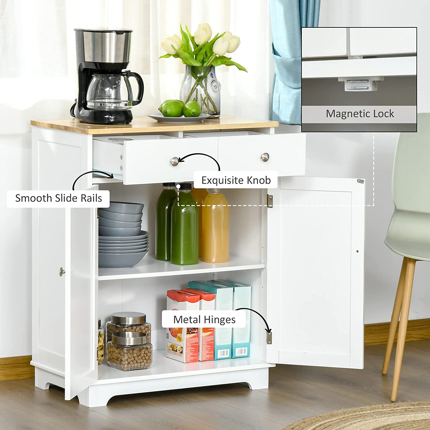 HOMCOM Double Door Sideboard Buffet Cabinet, Kitchen Cabinet, Coffee Bar Cabinet with 2 Drawers, Adjustable Shelf for Living Room and Hallway, White