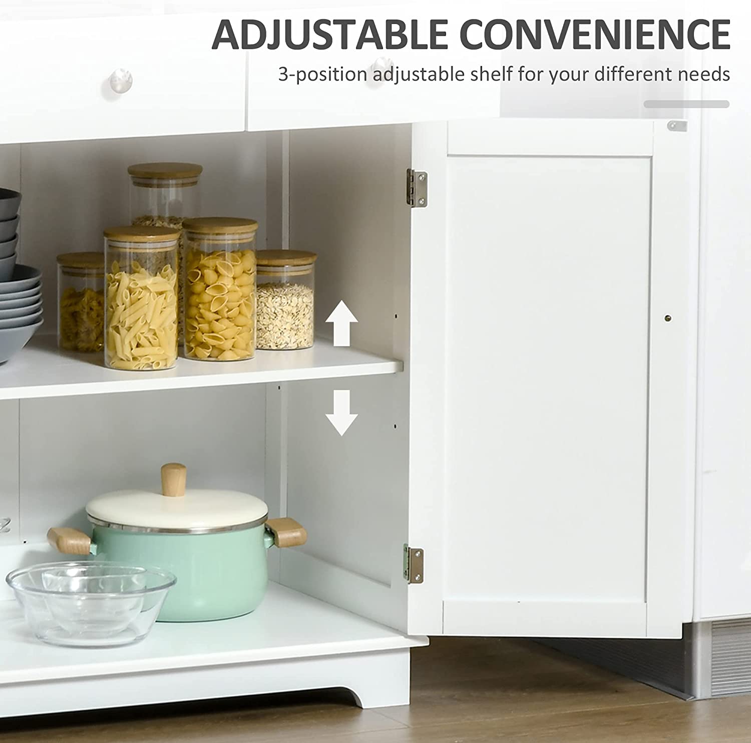 • Adjustable Shelf: The shelf of this kitchen cabinet is flexible in height, with a variety of holes so you can change the position. According to your storage needs, there's also the ability to remove the adjustable kitchen cupboard shelf.