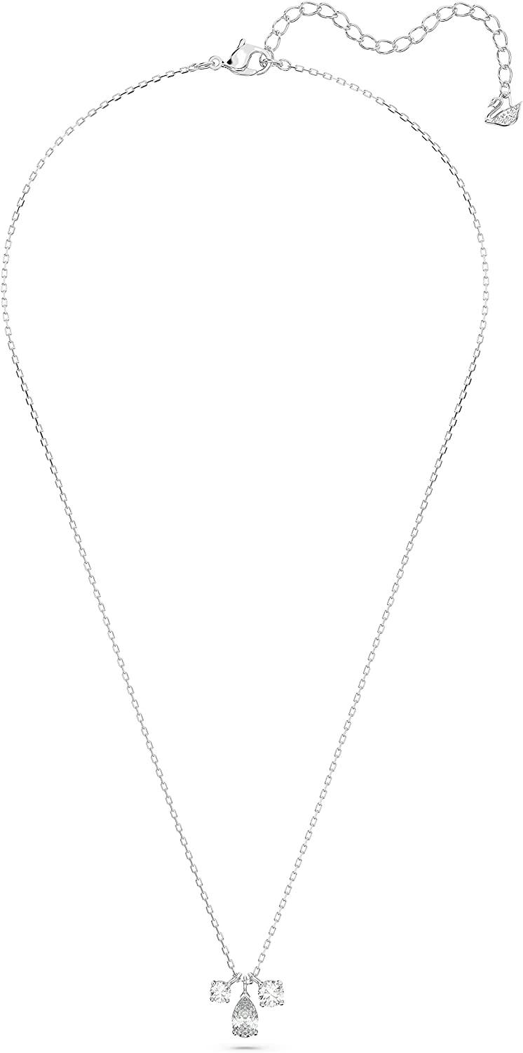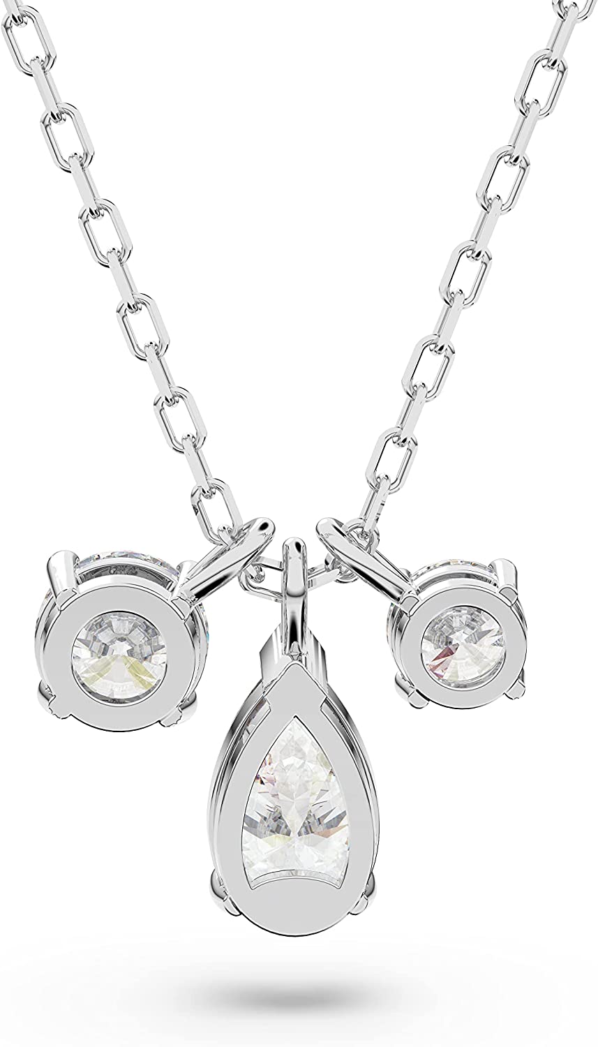 • Items delivered: 1 x Swarovski Attract Cluster Pendant, round and pear crystals on a thin rhodium plated setting, 14 7/8 inch long chain, with Swarovski necklace box