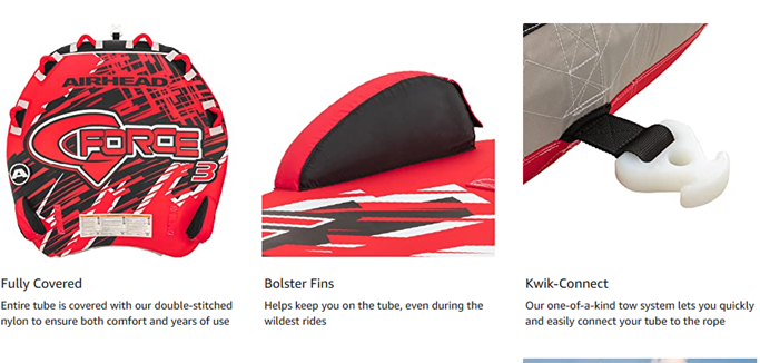 • Bolster Fins: Helps keep you on the tube, even during the wildest rides