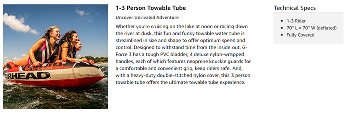 • 1-3 rider tube for boating and watersports
