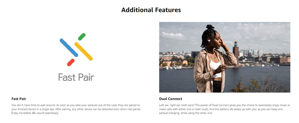 - INDEPENDENT BUDS FOR CALLS AND MUSIC: Left ear, right ear, both ears. The power of Dual Connect gives you the choice to seamlessly enjoy music or make calls with either one or both buds. And the battery life keeps up with you , as you can keep one earbud charging, while using the other one.