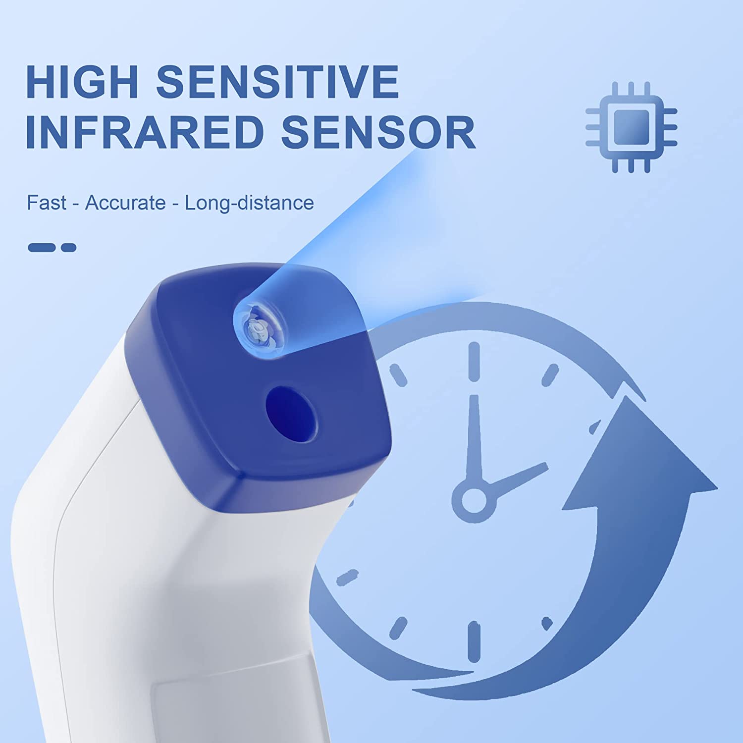 • Non-contact Infrared Digital Thermometer: The Superior performance is delivered by its latest NT-01 chip processor, the temperature can be precisely detected within 1-3cm(0.39-1.18 inches) measurement distance, which is faster, safer, more reliably, and can effectively prevent cross-infection between multiple people.