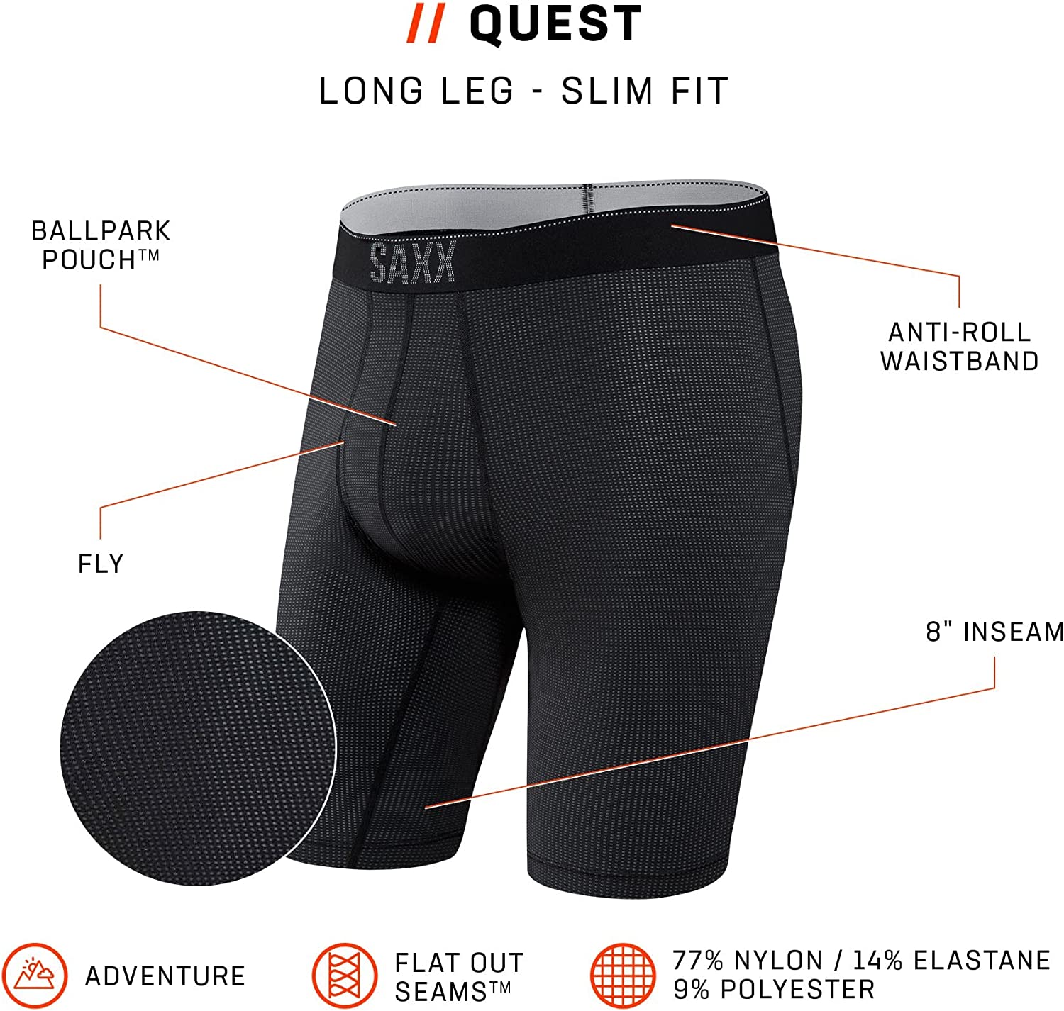 SAXX Men's Underwear – QUEST Quick Dry Mesh Long Leg Boxer Briefs with Built-In Pouch Support – Underwear for Men