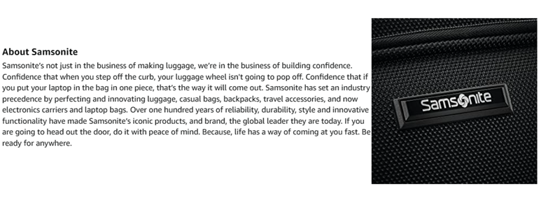 • 10 YEAR LIMITED WARRANTY: Samsonite products are rigorously tested to ensure our products meet stringent standards. This bag comes with a 10-year warranty against defects in materials and workmanship.