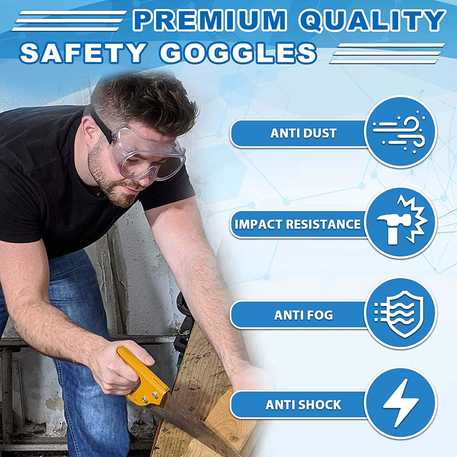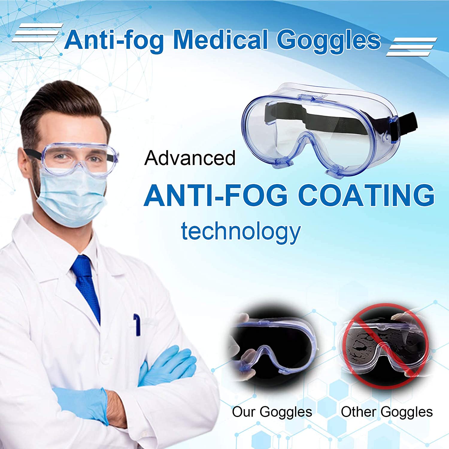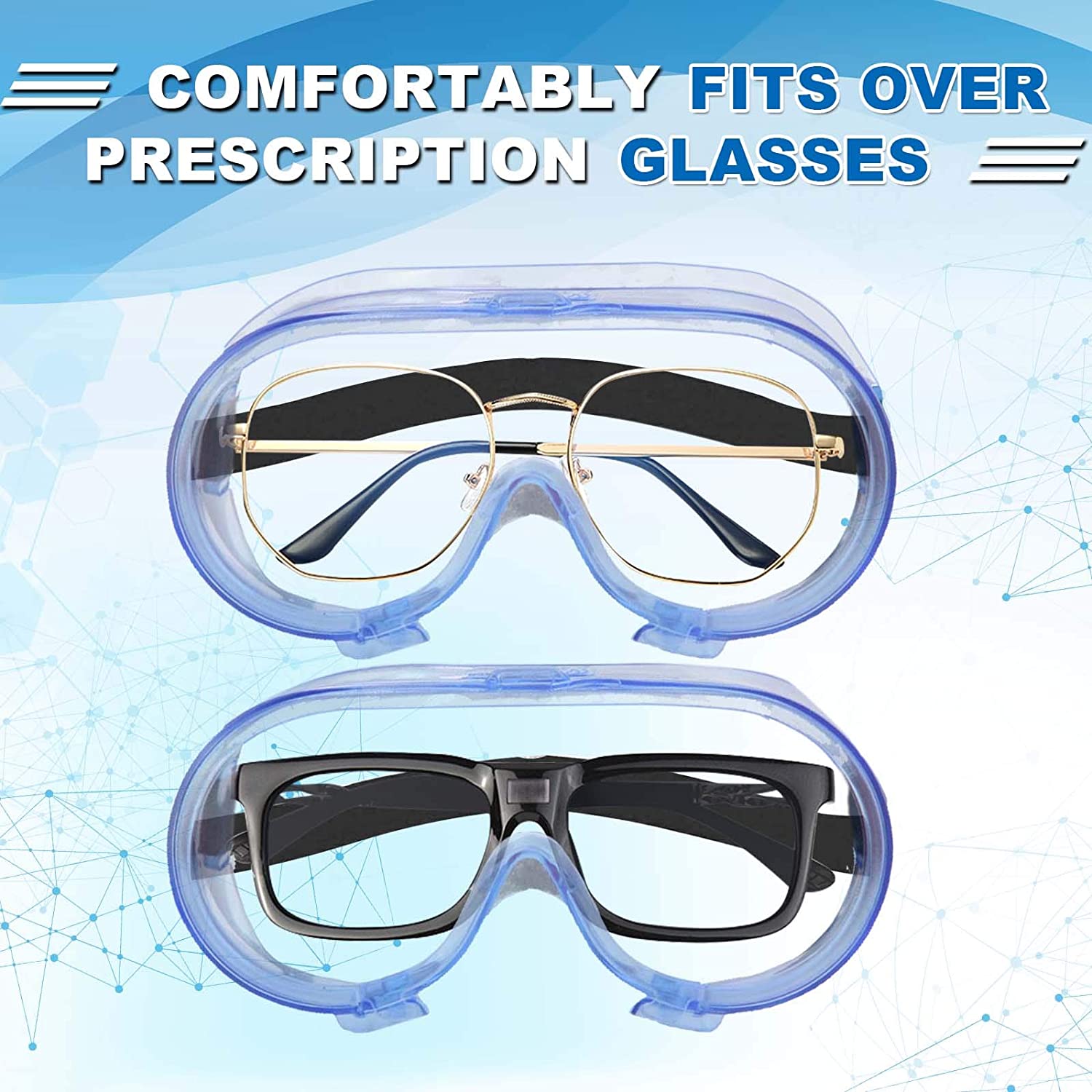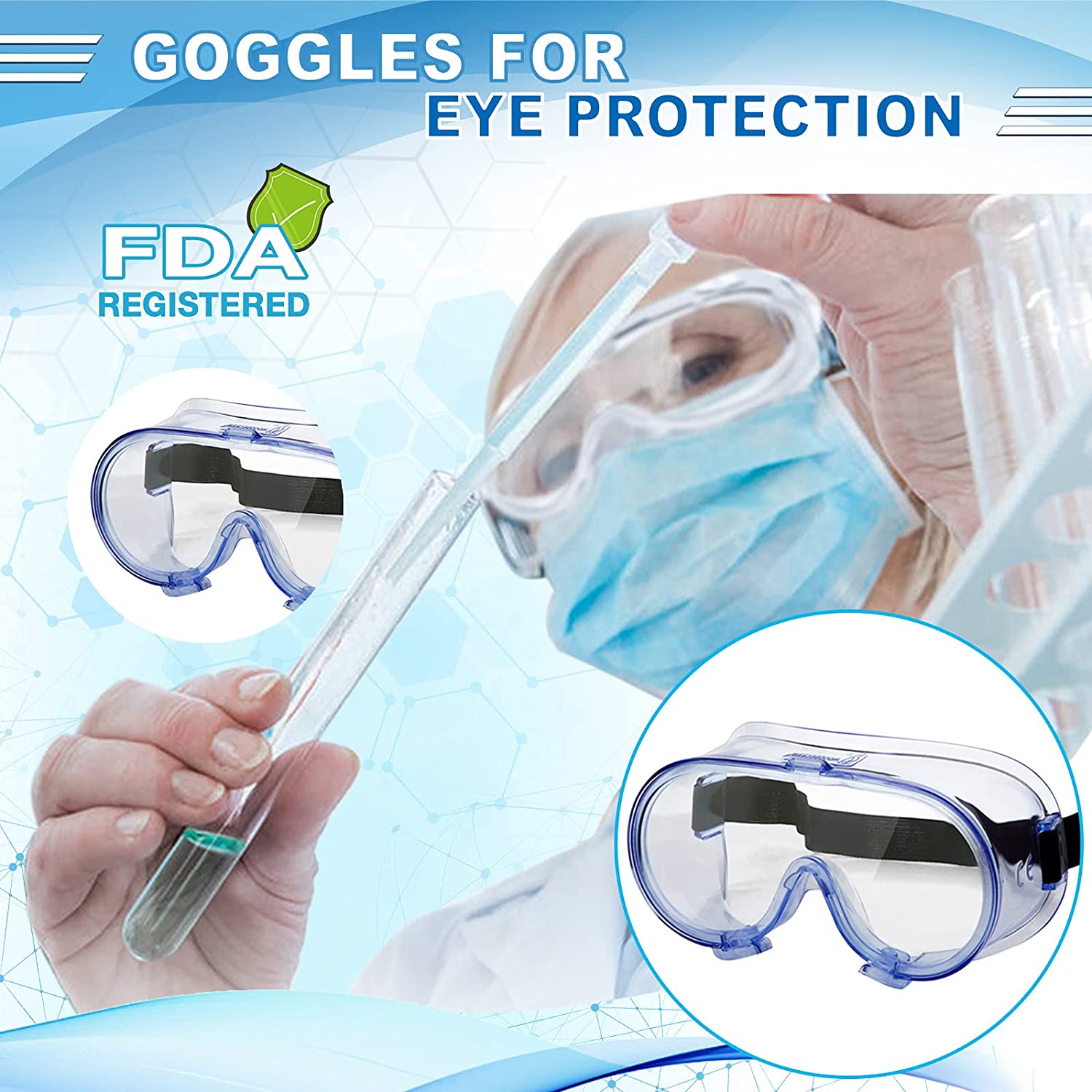 VAKKER Safety Goggles FDA Registered, Z87.1 Safety Glasses Eye Protection-Medical Goggles Fit Over Eyeglasses-Unisex Ultra Clear Protective Glasses Protective Eyewear-Lab Goggles Medical Protection
