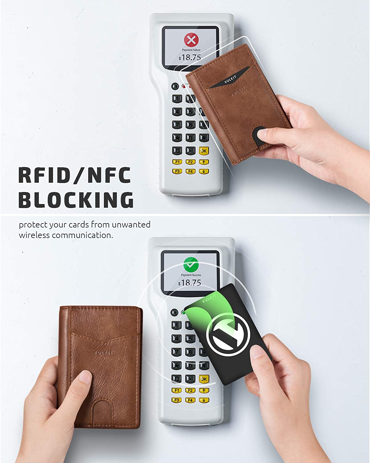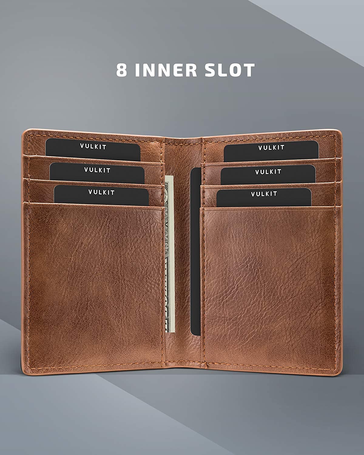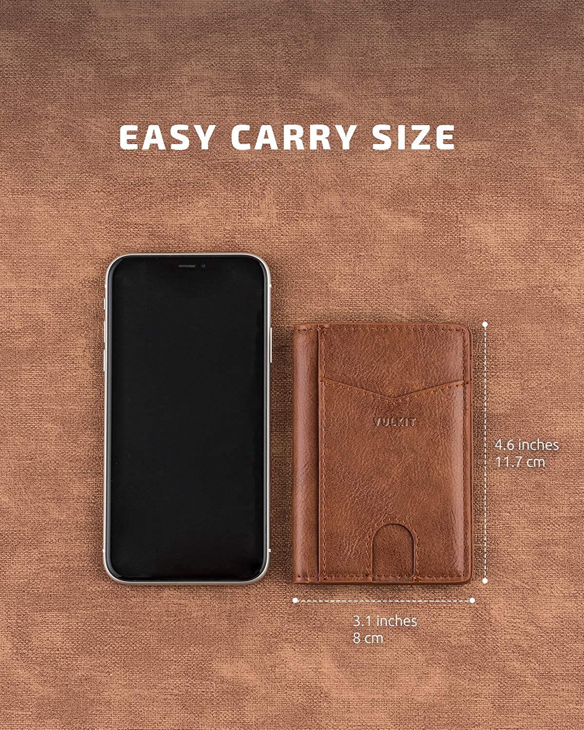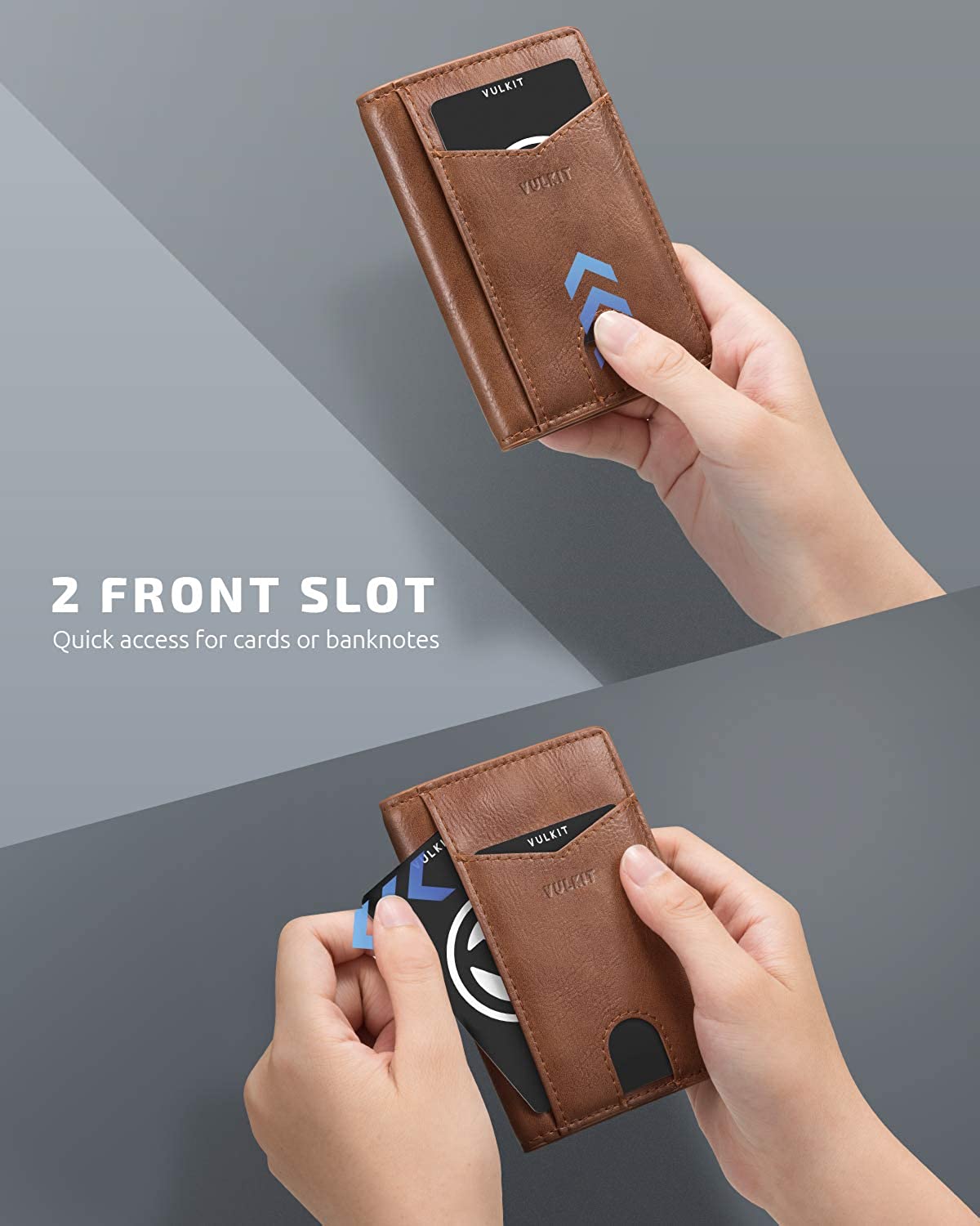VULKIT Bifold Front Pocket Slim Wallet RFID Blocking Minimalist Thin Leather Credit Card Holder Wallet for Men and Women