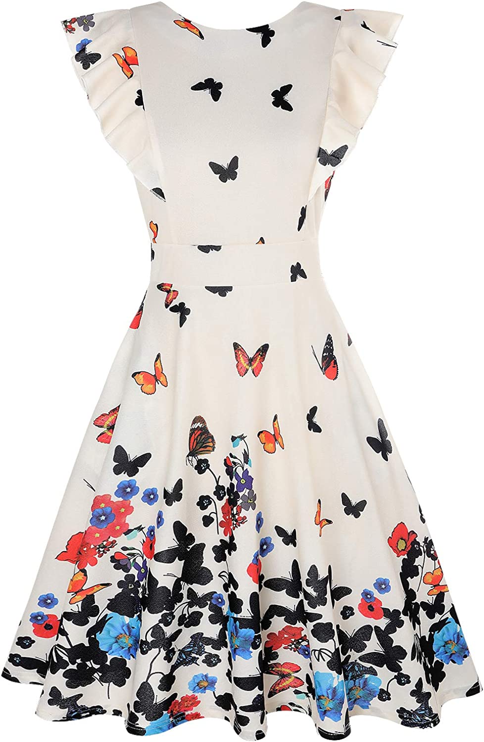FLATTERING RUFFLE SLEEVES : The sexy flutter sleeves add some pizzazz and not tight around your arms. Plus there is extra fabric that covers the space between your arm and the ruffle, this makes the dress very classy.¡¾WARM TIPS¡¿This size of vintage dress is smaller, to ensure your experience, pls order one size up.Thank you!