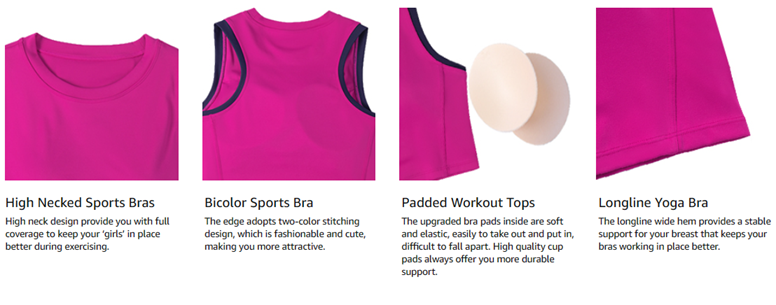 Colors: Khaki, Navy Blue, Rose Red, Light Blue, Pink sports bras