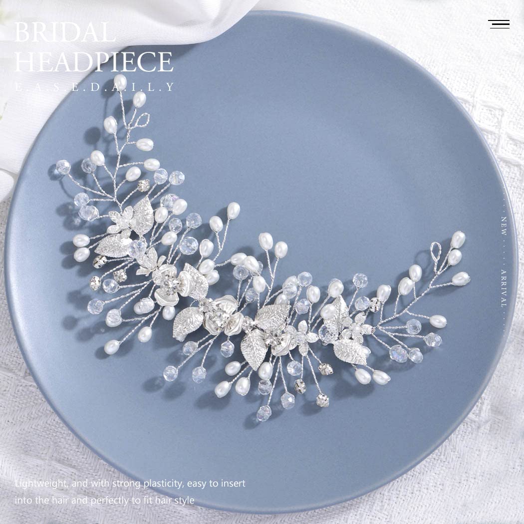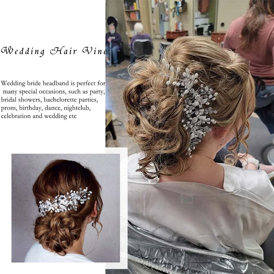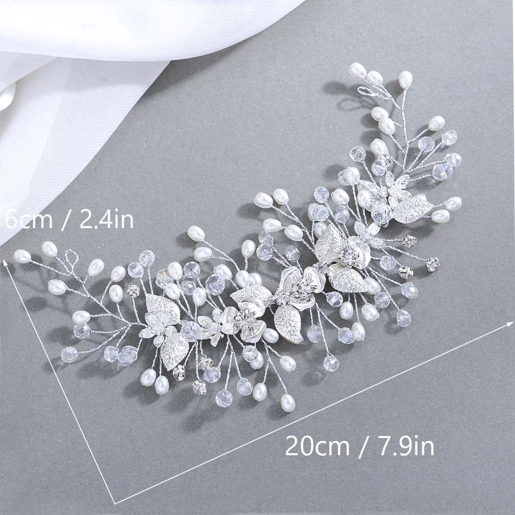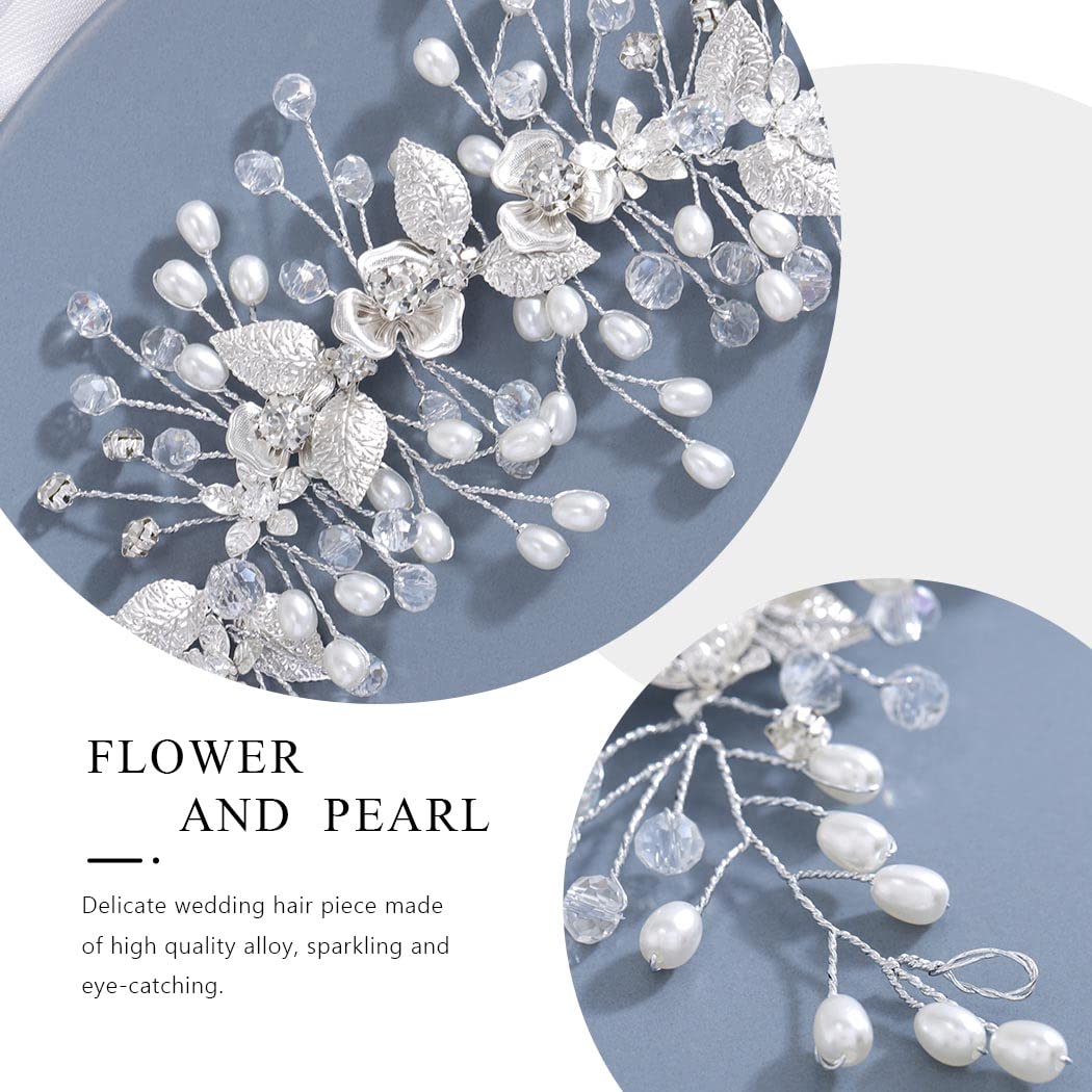 Easedaily Bride Wedding Hair Vine Silver Flower Leaf Bridal Headpieces Pearl Hair Accessories for Women and Girls