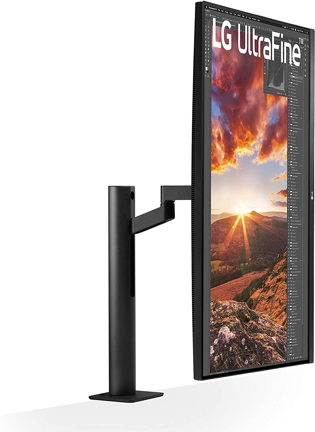 Elevate productivity with flexible workstation and monitor in one. Height-adjustable to help you do your best work. Turn to LG’s 31.5” UltraFine UHD 4K IPS Display Ergo Monitor to edit photos, create content and design graphics at just the right height — whether sitting or standing. An ergonomic monitor that works hard for professionals looking for an even more proficient workstation, while still delivering amazing 4K picture, breathtaking clarity, fine detail and accurate color. POWER Input 100-240 Vac, 50/60 Hz and Power Consumption (Max.) 55W .