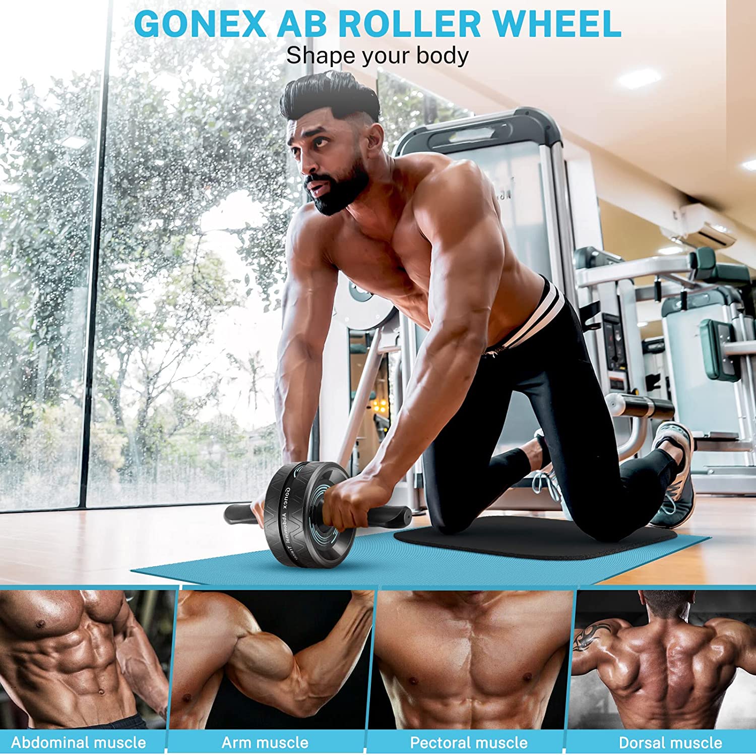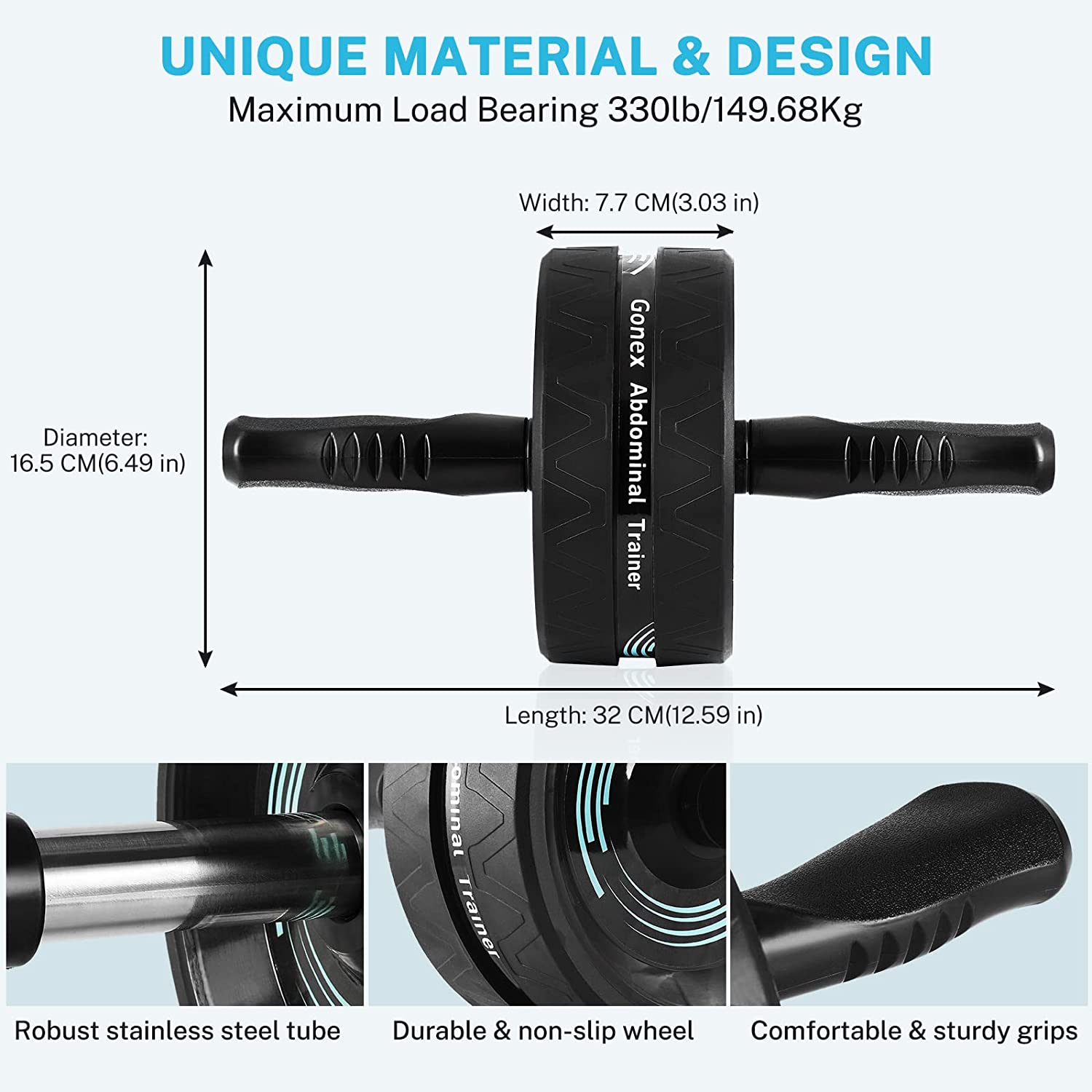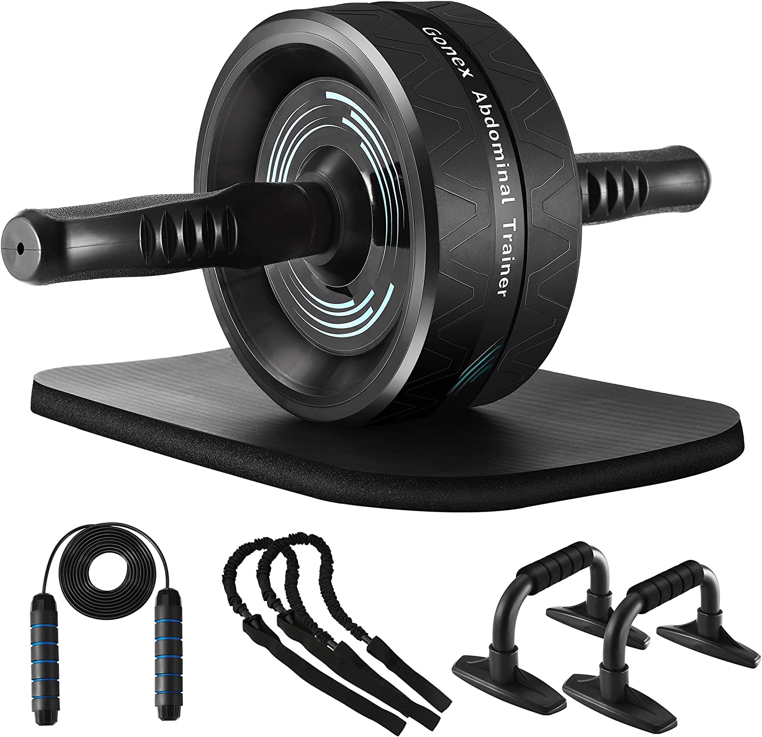 Gonex Ab Roller Wheel, Home Gym Equipment, Ab Wheel for Abdominal & Core Strength Training with Resistance Bands, Knee Mat, Push-Up Bar Accessories, Core Sliders or Jump Rope