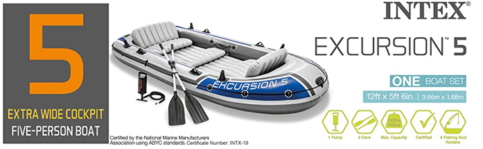 Model Name‎Excursion 5 Inflatable Heavy-Duty Fishing Boat Set with Aluminum Oars and High Output Air Pump
