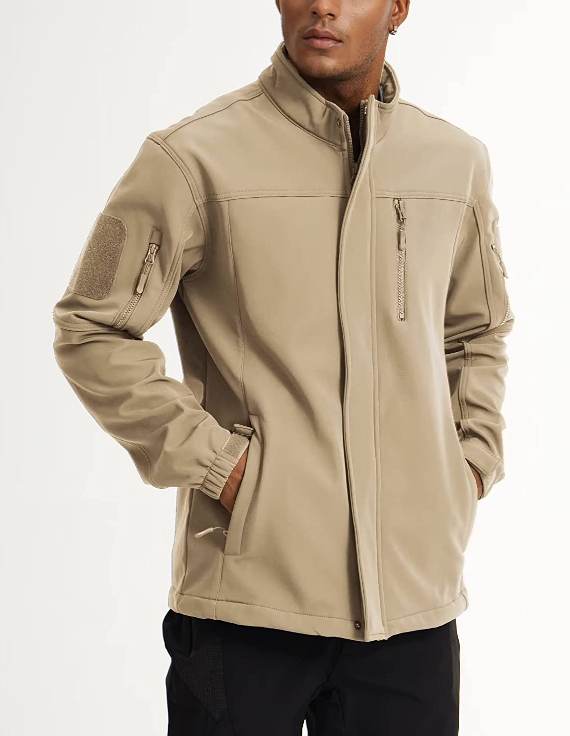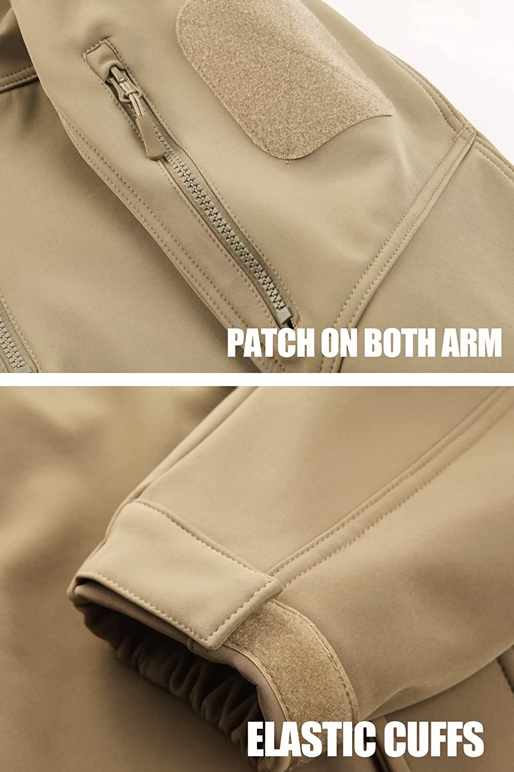 • DESIGN: Military Tactical Design with Stand-Up Collar and Full Zip Up, Patch On Each Arm