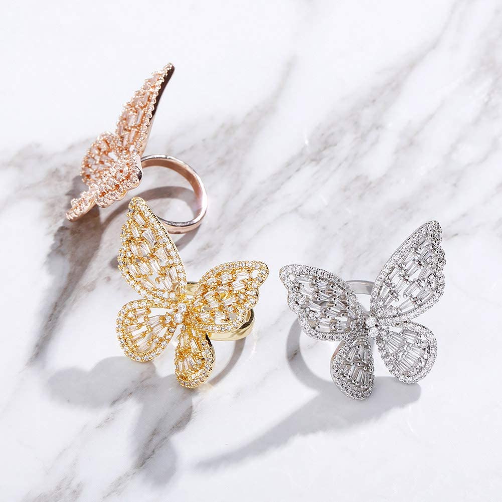 ?[Adjustable open-end Rings]- Our silver butterfly ring can fit any size finger. The wide of this cz ring can be adjusted to fit your finger's size. At the same time, when you bend your finger, the butterfly on the ring will be like flying,especially beautiful and cute.