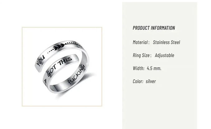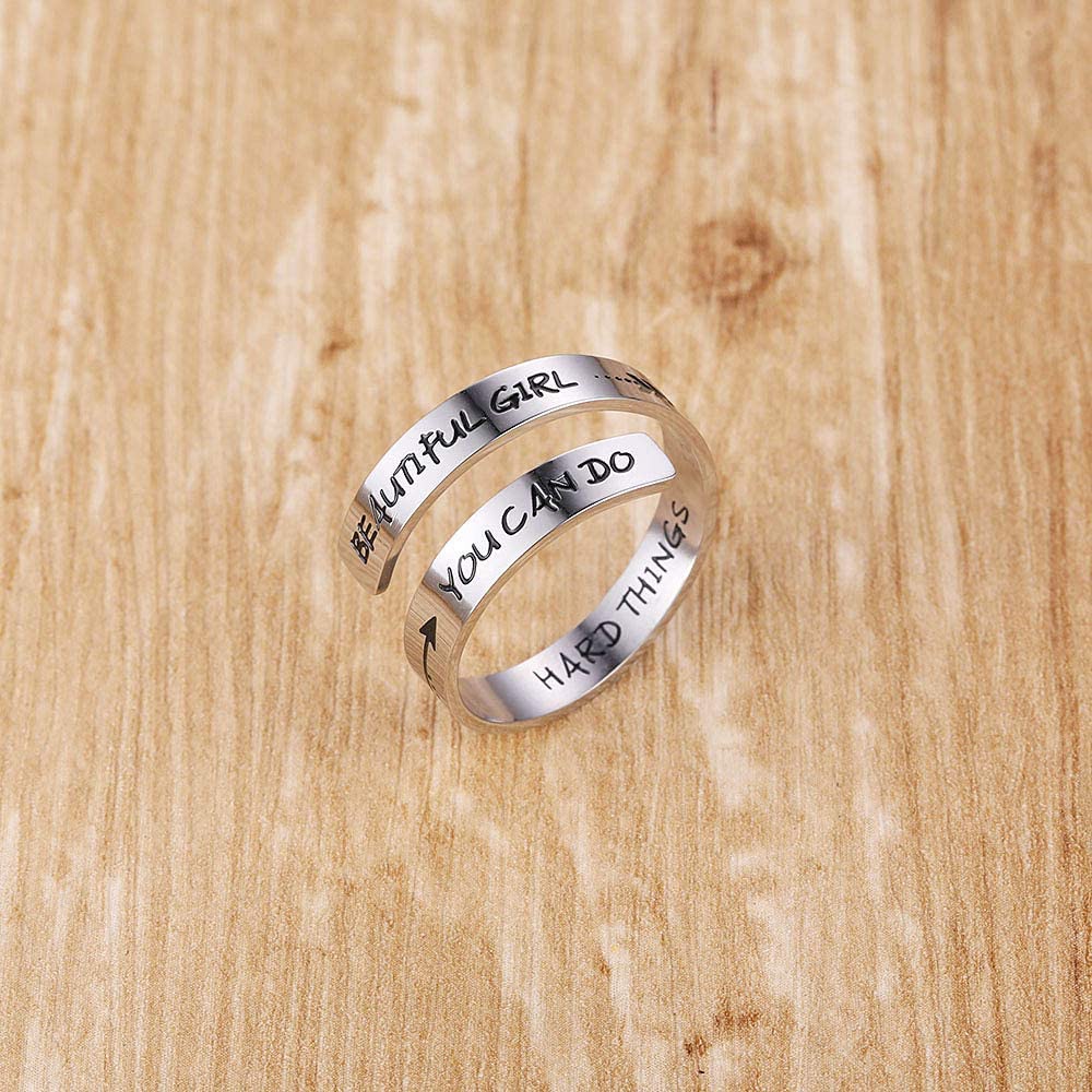 • The silver rings is flexible enough with a gentle squeeze or slight spreading to adjust,it fits most finger sizes.This beautiful, love and mindfulness piece of jewelry is truly inspirational! It's the best gift for you or your love ones to encourage them.