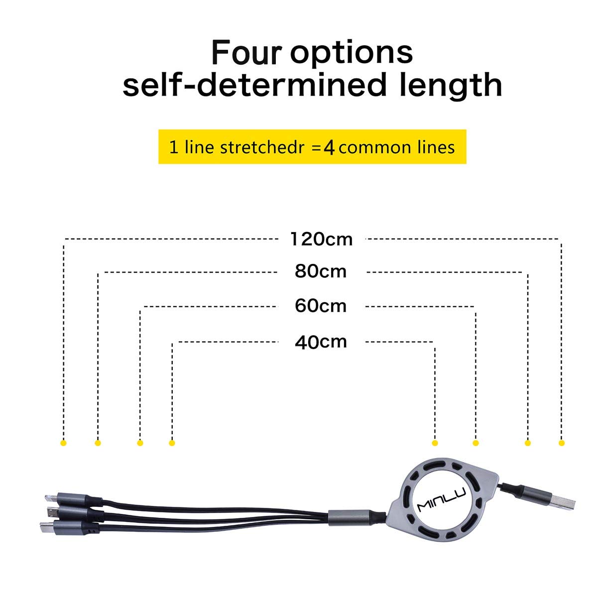● 4Ft/120cm is perfect length for long distance charging, 3-in-1 retractable design, makes the cord portable and only need one cable when you are on a business trip or traveling.