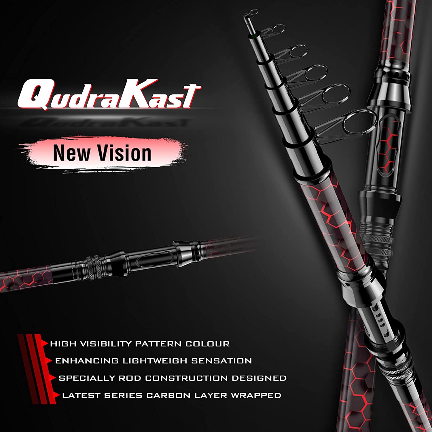 QudraKast Fishing Rod and Reel Combos, Unique Design with X-Warping Painting, Carbon Fiber Telescopic Fishing Rod, Best Gift for Fishing Beginner and Angler