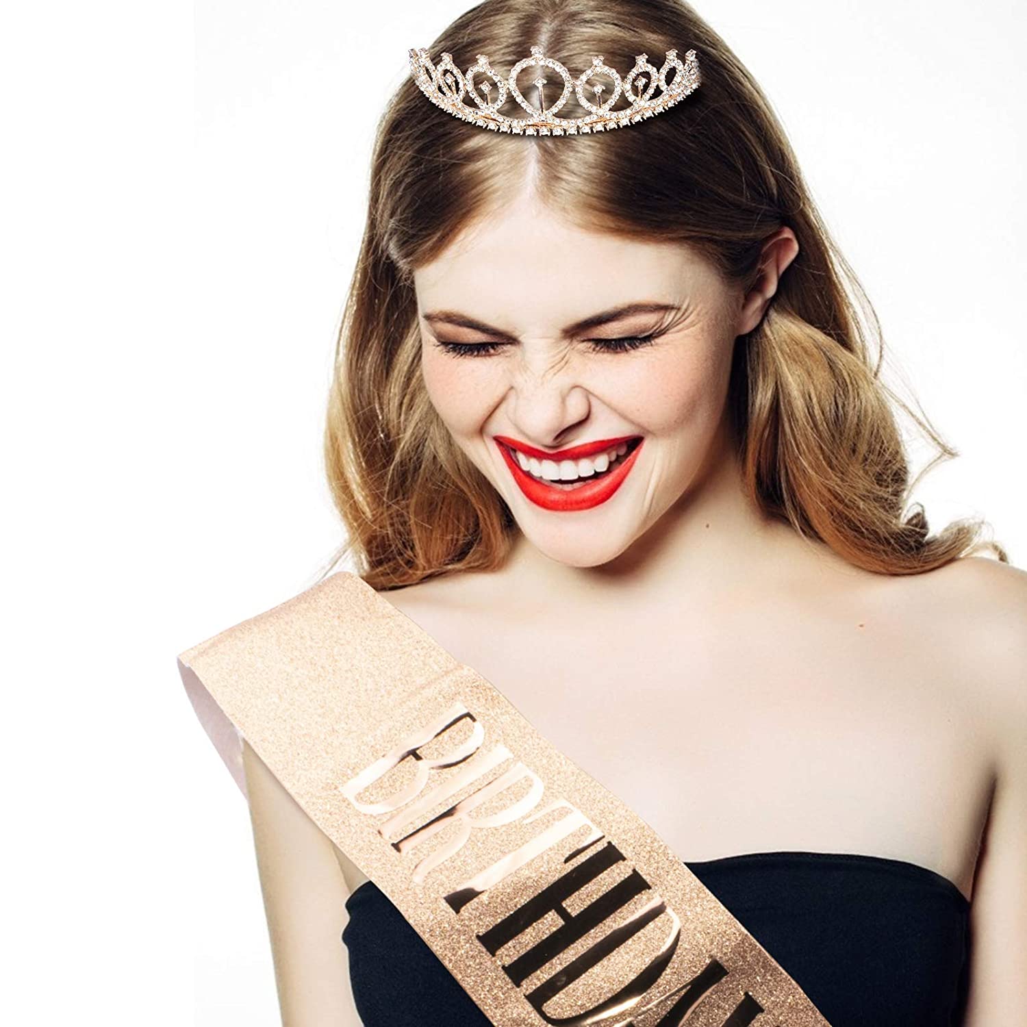 CIEHER Birthday Queen Sash & Rhinestone Tiara Kit, Birthday Crowns for Women Birthday Crown Birthday Tiaras and Crowns Rose Gold Birthday Tiara Crowns for Women Girls Birthday Gift Birthday Decoration