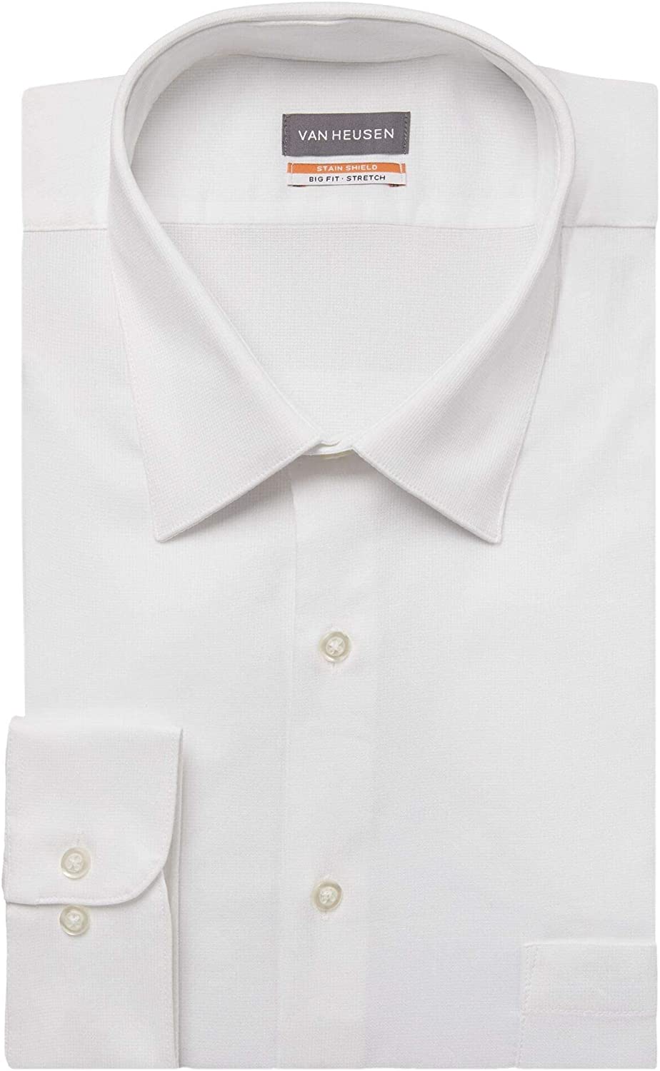 Block tough stains before they start with Van Heusen Stain Shield dress shirts. Designed for extreme stain defense even against tough water- and oil-based spills, this innovative button-up will quickly become your new go-to style at work, home, or out to dinner. When accidents happen, just rinse with running water and watch the mess roll off. The quick-drying, soft fabric also has natural stretch for added all-day comfort. The machine washable style is easy to wear right out of the dryer.