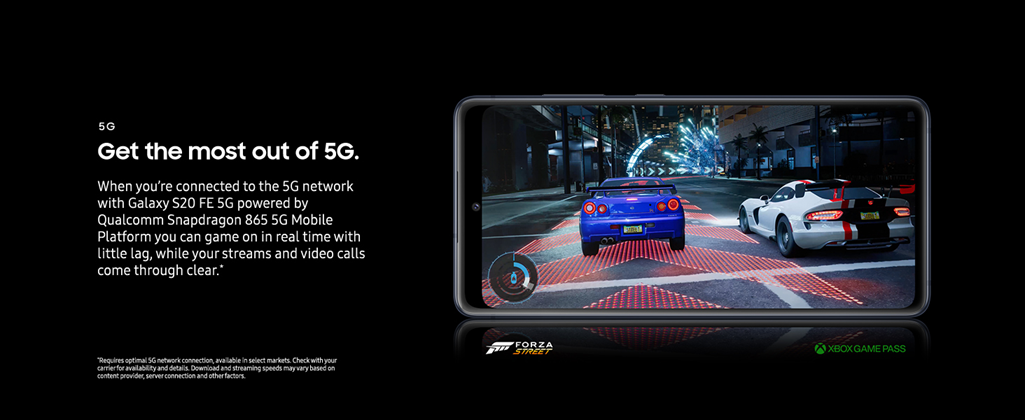 With A Triple Pro-Grade Camera, Smooth 120Hz Refresh Rate Display, And An All-Day Intelligent Battery¹ That Charges Up In Minutes, The Samsung Galaxy S20 Fe 5G Delivers Outstanding Innovation. The Triple-Lens Camera System Will Not Only Take Bright And High Quality Images And Videos, But Can Also Zoom In From Afar, Thanks To The 30X Space Zoom. The Single Take Ai Mode Will Let You Capture Multiple Images And Videos With Just A Touch Of A Button. Shooting At Night? No Problem. With The Help Of Night Mode, The Galaxy S20 Fe 5G Phone Can Capture Crystal-Clear Images Without Flash. The Samsung Galaxy S20 Fe 5G Series Is Tailor-Made For Those Who Want The Latest Technology Without Compromise. Choose From A Wide Range Of Six Colorful Hues In A Sleek Matte Finish. Battery Power Consumption Depends On Usage Patterns And Results May Vary. 5G Speeds Vary And Require Optimal Network And Connection (Factors Include Frequency, Bandwidth, Congestion).