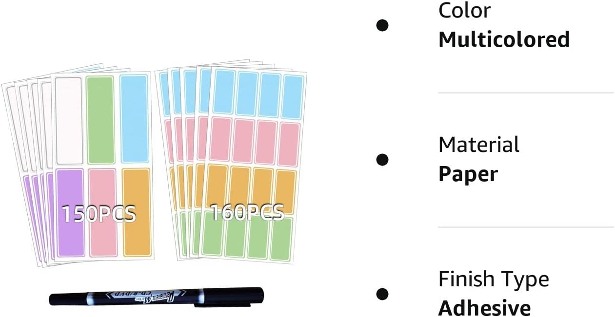 Svance Assorted Colors Waterproof Removable Labels - 310PCS with Pen Daycare Bottles Adhesive Name Label Stickers for Baby Kids School Supplies,Water Bottles,Home Storage Spice Bottles