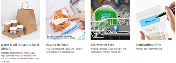 • [Easy-to-use name tag sticker]Just write the name tag on the permanent mark, then dry, peel and paste it on water bottles, storage containers, glass jars, folders, essential oil bottles and other items that need to be marked. Dishwasher safety label, refrigerator safety label