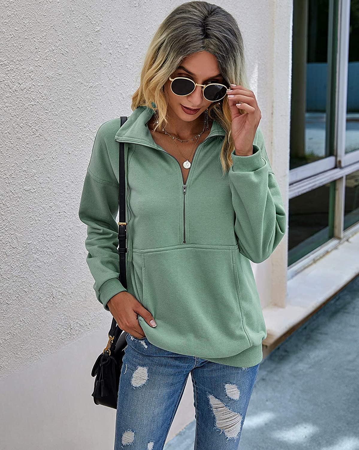 Versatile Half Zip Pullover Women: Drawstring lapel womens sweatshirt in solid color is simple yet fashion. Half zipper womens sweatshirts no hood are easy to put on and take off. Relaxed fit plain cute sweatshirts for women can be dresses up or down, perfect with leggings, jeans or shorts
