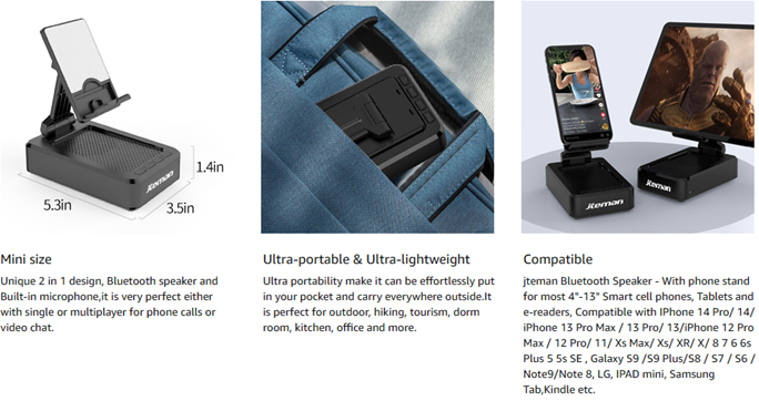 • 2 in 1 Function:Bluetooth Speaker and the design of the mobile phone holder make it more convenient for you to use.Bluetooth 5.0 speaker cell phone holder Best gift for all people: If you are not satisfied, we provide a free refund.