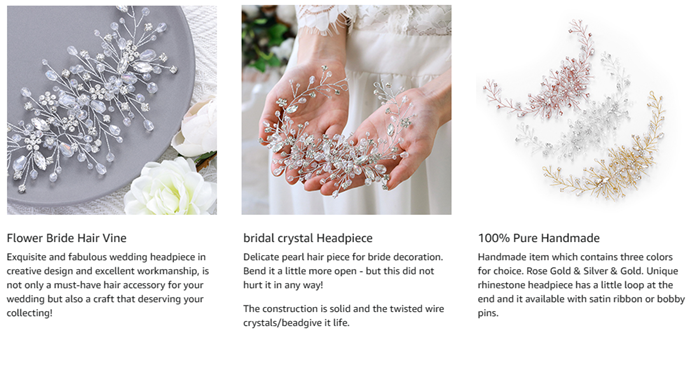 - Silver rhinestone wedding hair ornaments in unique design and excellent workmanship, made of crystal & flower & alloy wire. Party hair vine approx size: 9.84inches(25CM); 2 bobby pins and 1 ribbon for free. Silver, Gold and Rose Gold color for choose.