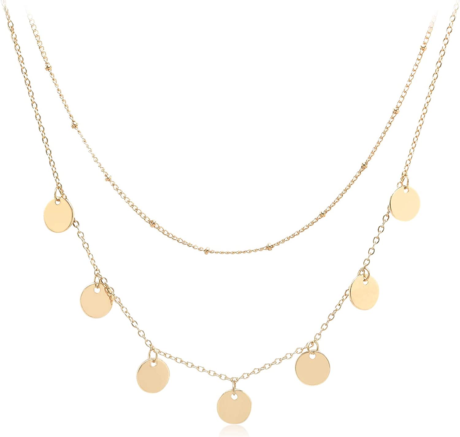 Aisansty Dainty Layered Choker Necklaces Handmade Coin Tube Star Pearl Pendant Multilayer Adjustable Layering Chain Gold Plated Necklaces Set for Women Girls