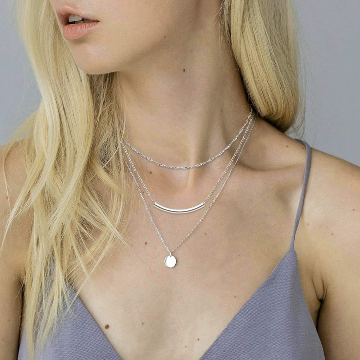 • There are 3 necklaces set in one order,the necklaces length is 14"/16"/18"(+3" extender chain)as a layered necklace,simple and elegant,the silver layered necklace can be free to matching your preferences,you can wear them together or separately.