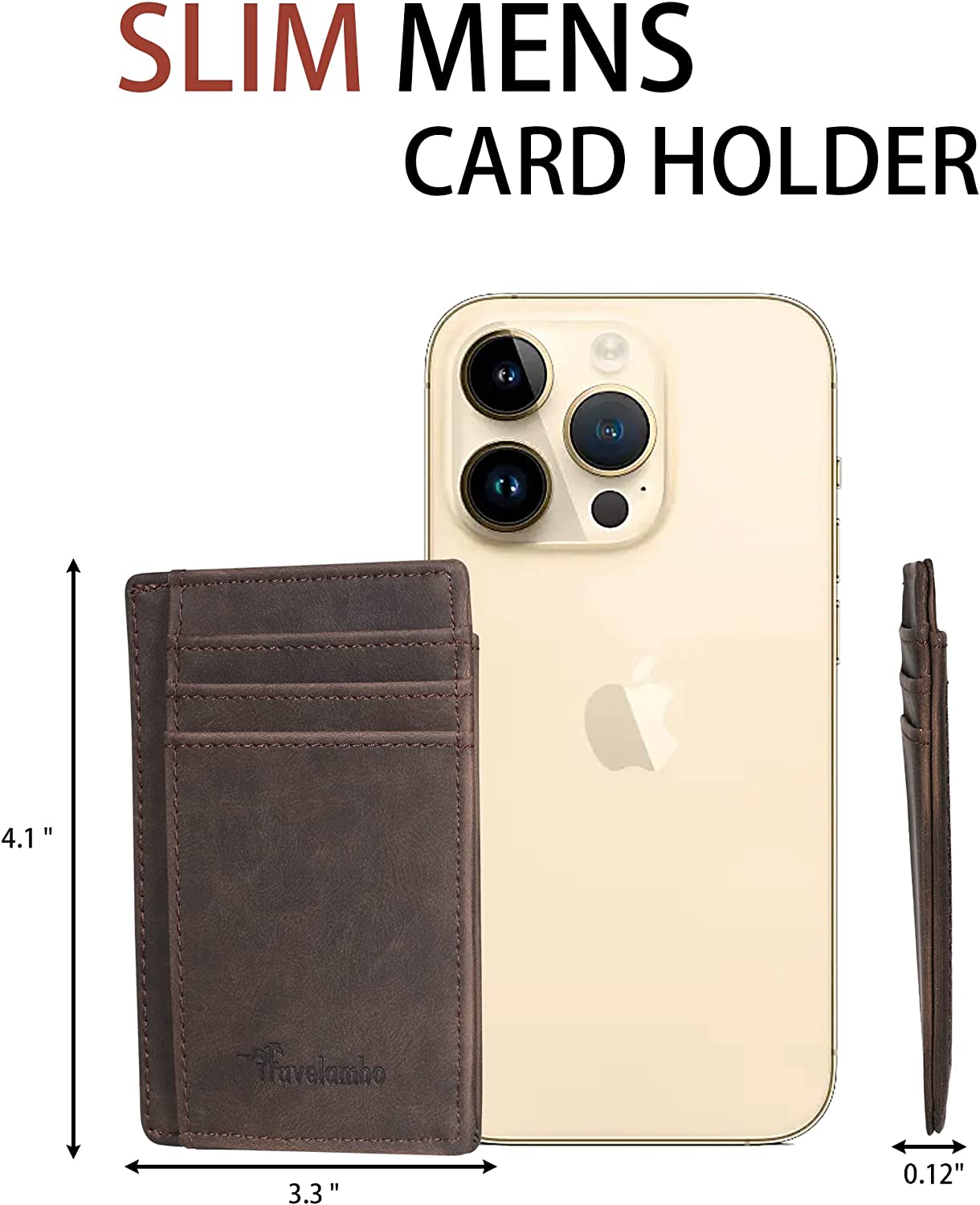 Travelambo Front Pocket Minimalist Leather Slim Wallet RFID Blocking Medium Size