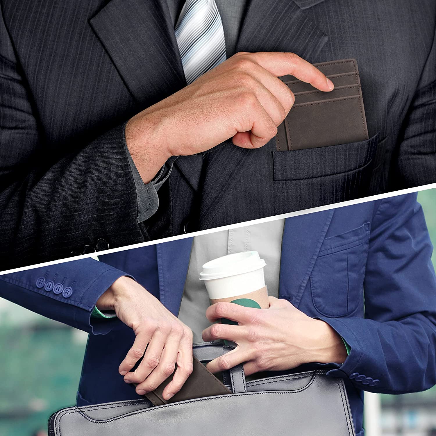 • SUPER MINIMALIST & SLIM: only 0.12" thick, sizing 3.3" X 4.1" X 0.12" extremely convenient to be carried around in your front or back pocket. 100% GENUINE LEATHER: soft and durable.