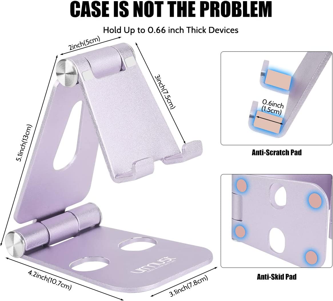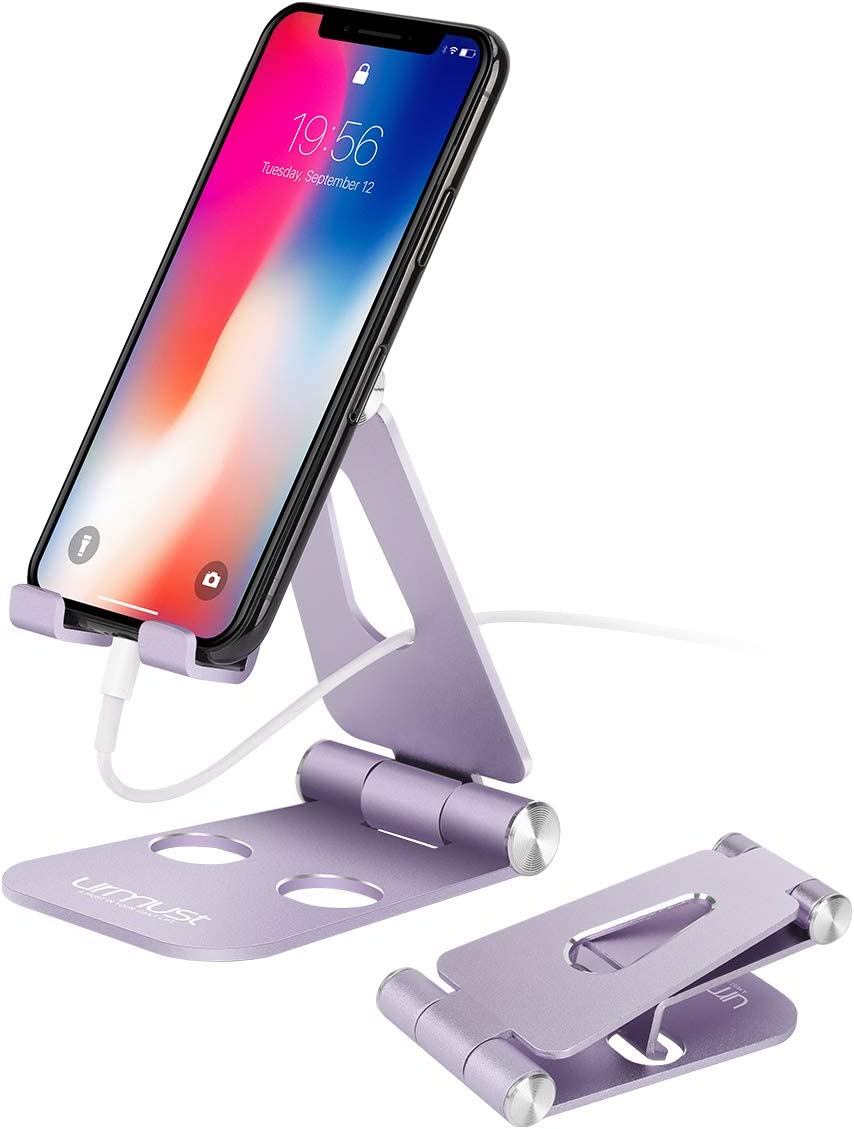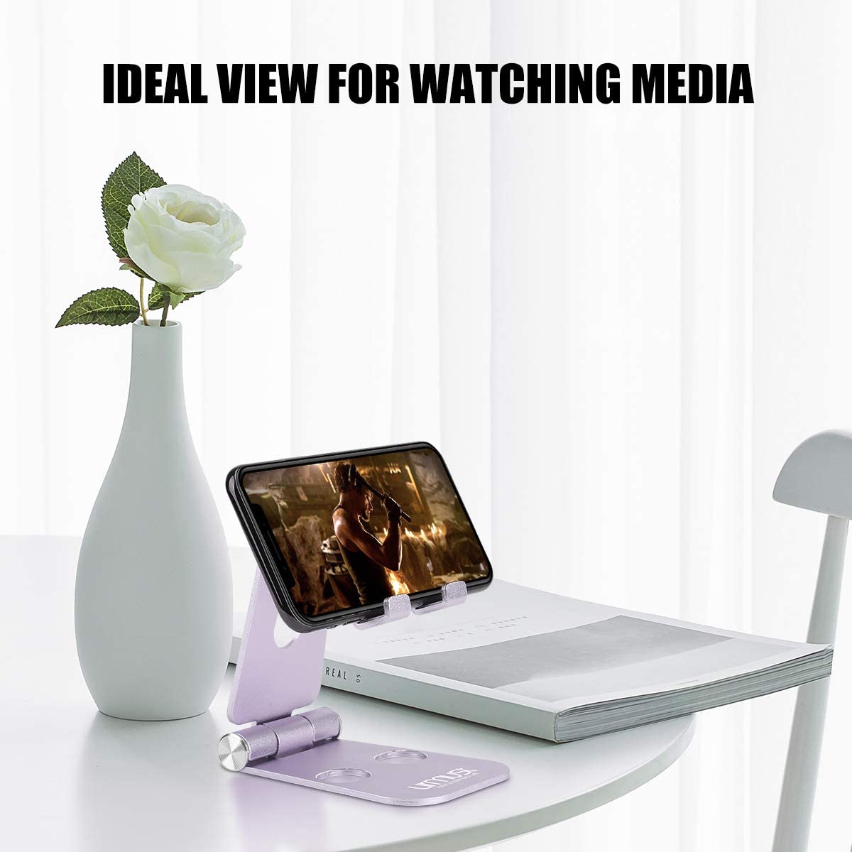Urmust Cell Phone Stand for Desk Adjustable Foldable Phone Holder for Office Portable Desktop Dock Compatible with iPhone 14 13 12 11 Max Pro Xs Xr X 8 7 6, iPad Mini, Tablets 7-10" (Purple)