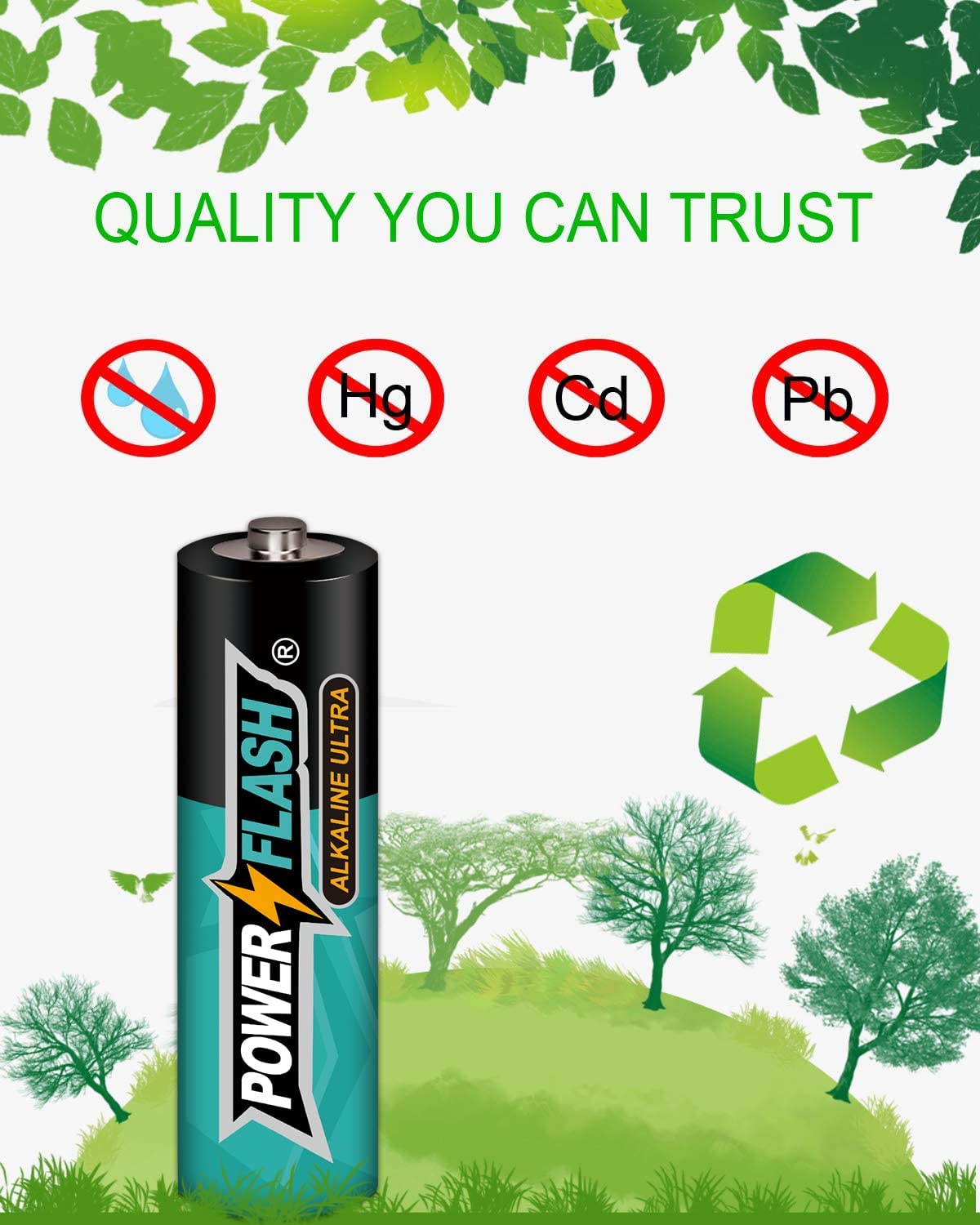 ENVIRONMENTALLY CONSIDERED - Our 1.5-volt Alkline aa batteries contain no mercury or cadmium,we fully consider our environmental impact as we make our premium grade aa Alkaline batteries, Making them a smart choice for your family and for the environment