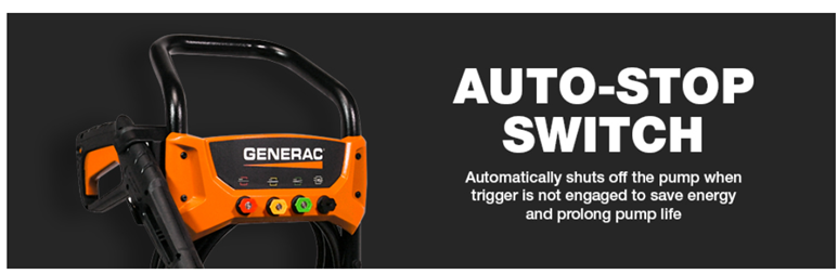 • Auto-Stop Switch – Automatically shuts off the pump when trigger is not engaged to save energy and prolong pump life