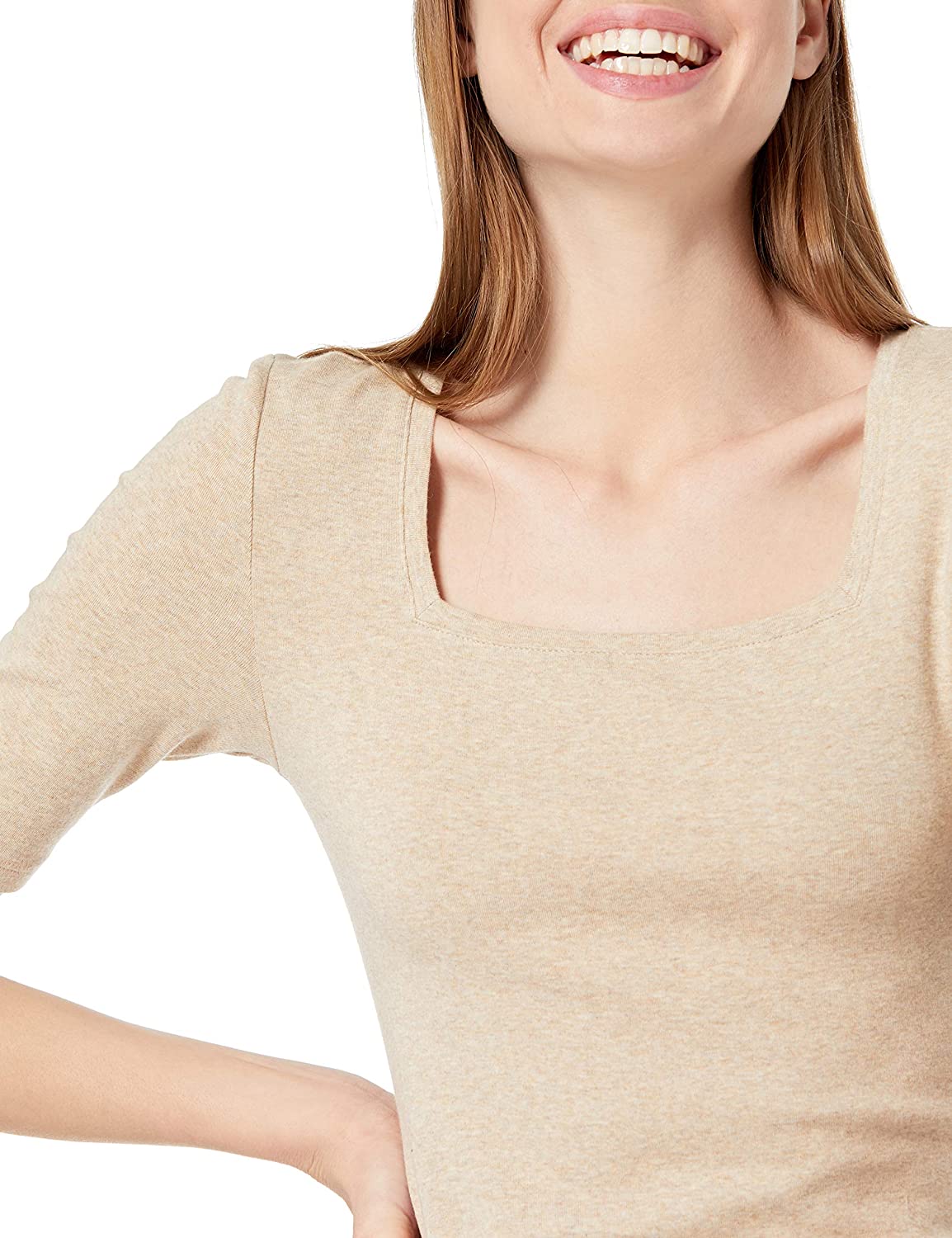 Amazon Essentials Women's Slim-Fit Half Sleeve Square Neck T-Shirt