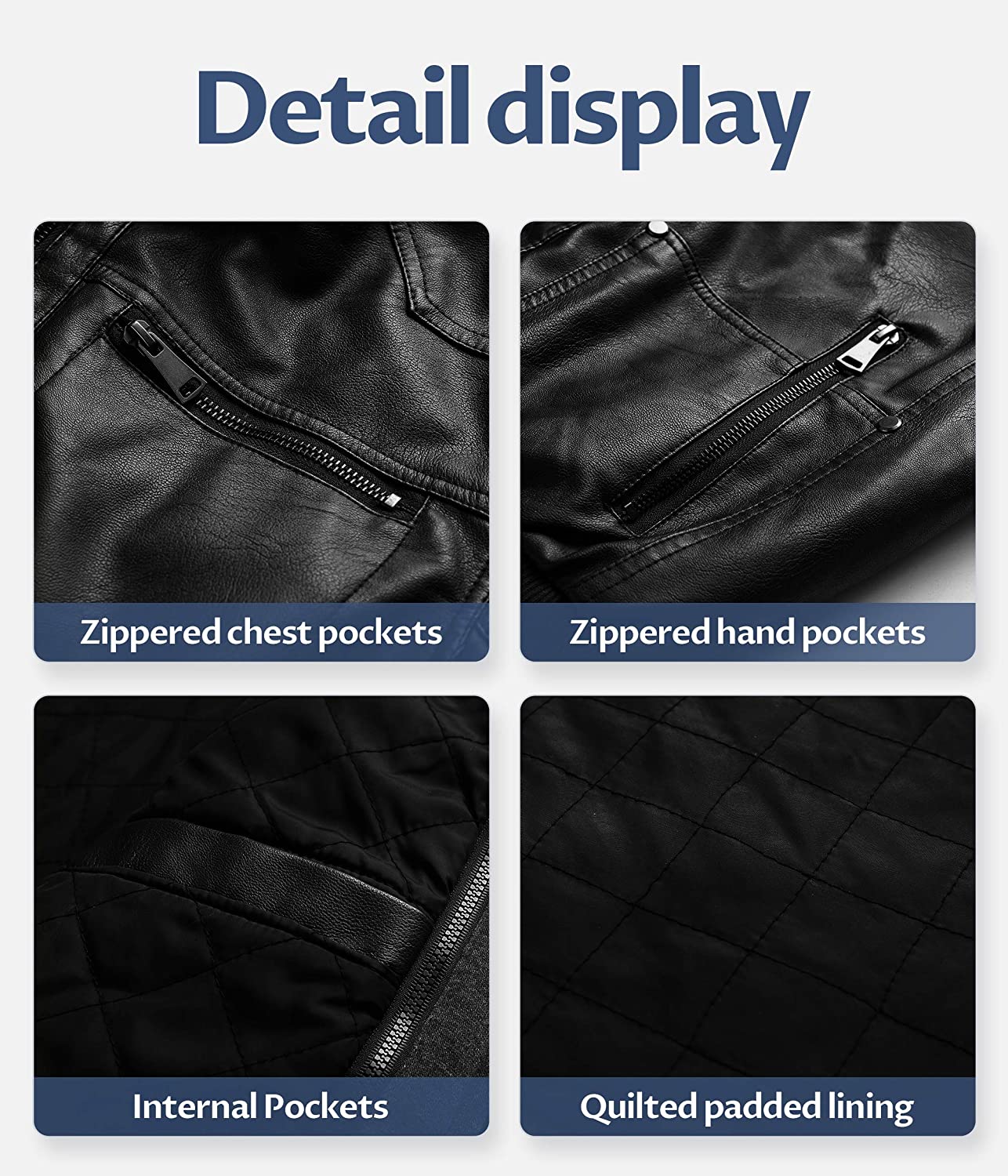 • ▶ 2 style design--Leather coat with removable hooded is design for different looks between stylish hooded riding jacket and casual stand collar winter jacket.