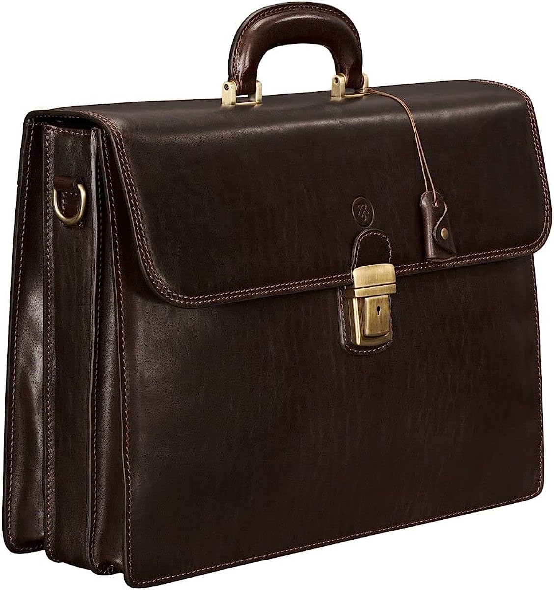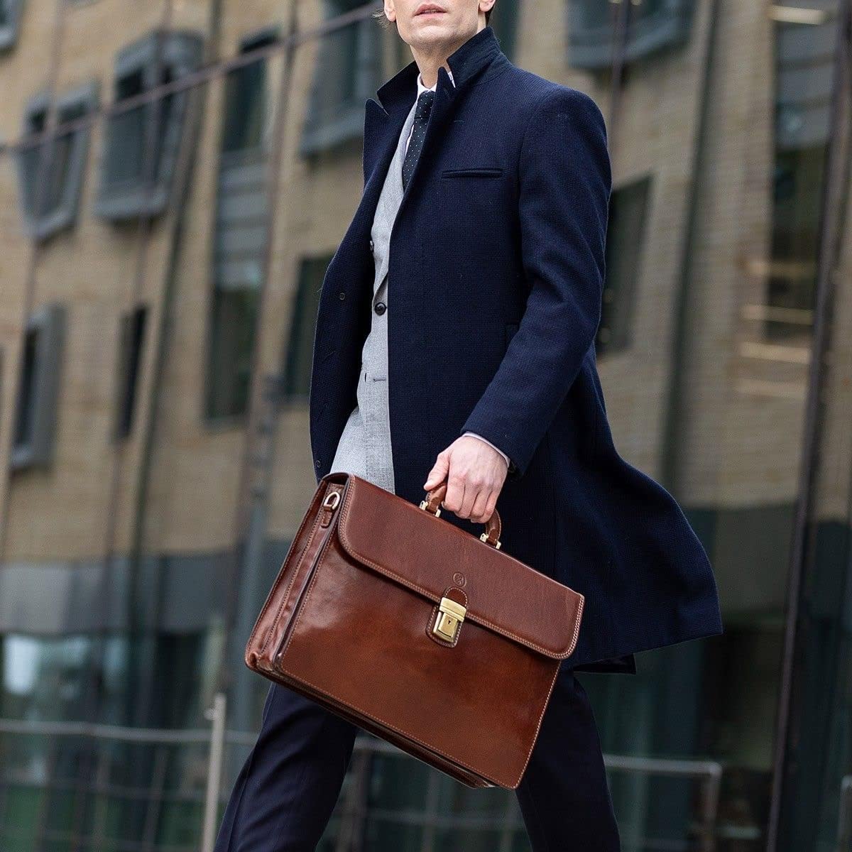 Maxwell Scott | Mens Luxury Leather 17" Laptop 3 Section Briefcase | The Paolo Large | Business Travel Bag