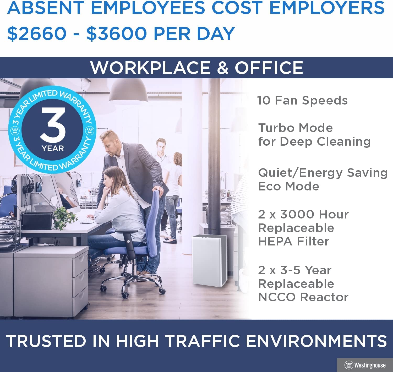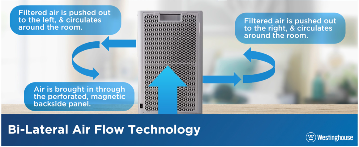 • KILLS VIRUSES & BACTERIA – 4 stage, 300 square foot Westinghouse air purifiers sanitize 99.95% of virus and bacteria organisms in the home, bedroom, work place, and office. 300 square foot coverage good for medium to large rooms.